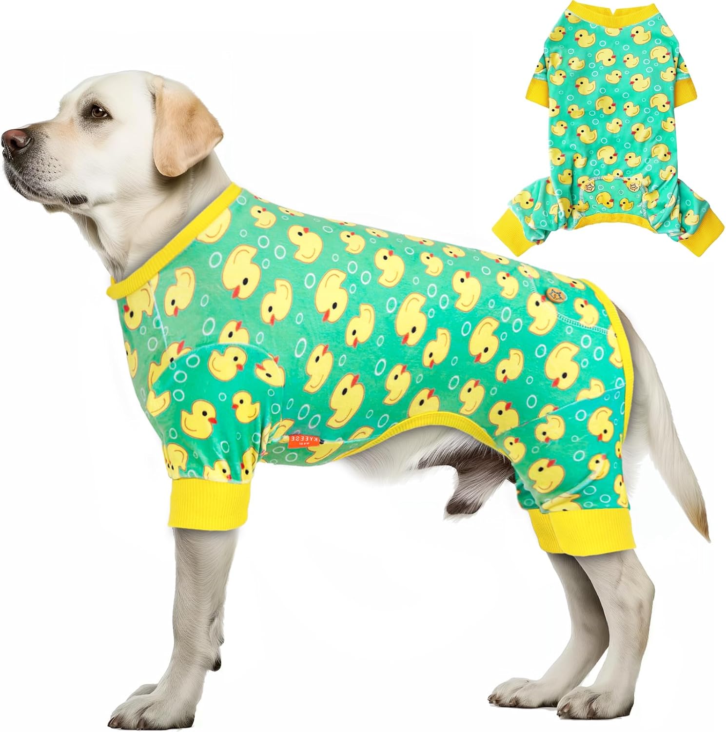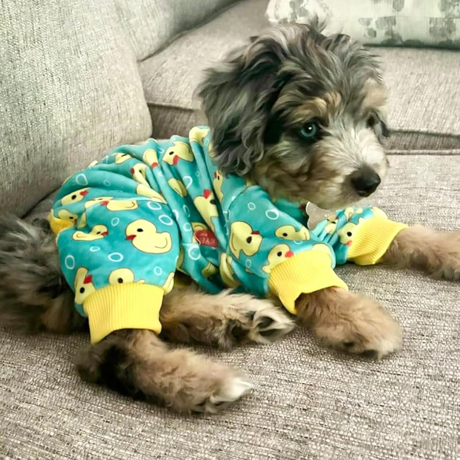 KYEESE Dog Pajamas Velvet Dog Pajamas Small Sized Dogs Soft Dogs Clothes Pet Coat Stretchy Doggie Pjs Pet Costume with Yellow Ducks Pattern Comfy Doggie Jammies Onesie, Medium
