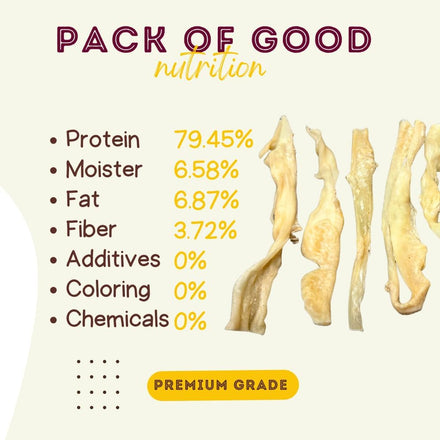 Lamb Cheek Strips Woofley's is here to make your precious pup wag and brag to their other furry friends! 100% All Natural Lamb Cheek are made from free range and environmentally friendly sourced, Grass Fed Lamb at our own plants to ensure the best tasting single ingredient dog treats in the world. Cow Ear chews are excellent rawhide alternatives without the negative consequences that sometimes occur when dogs are given rawhide. WOOFLEY's Dog Treats And Chews Product: Lamb Cheek Country of Origin: Turkey Flavor: Beef Nutritional Information: Crude Protein: 69.30 % (min) Crude Fat: 8.31 % (min) Crude Ash: 15.58 % (max) Moisture: 6.81 % (max) Other Benefits: – Helps promote healthy teeth and gums – Amazing chew for all dog sizes -No Added Chemicals, Preservatives, or Man-made Ingredients -Amazing alternative for Rawhide Dog Chews Feeding Instructions: When providing your beloved dog with Woofley's Dog Chews & Treats’ all-natural dog chews for supplemental feeding make sure there is a bowl of water readily available, and close supervision is highly recommended as this is the safest way to ensure your pup is chewing our treats properly.