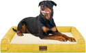 - 【Sofa Bed Design】The 3-sided 3.5 inch bolster design promotes ultimate comfort and security, offering your pet a variety of cozy positions to snuggle; the cushioned bolster shape is fully filled to support your pet’s head and neck for a more restful sleep; further more, there is a touch fastener attached which makes it available for you to put two dog beds together for a extra large one