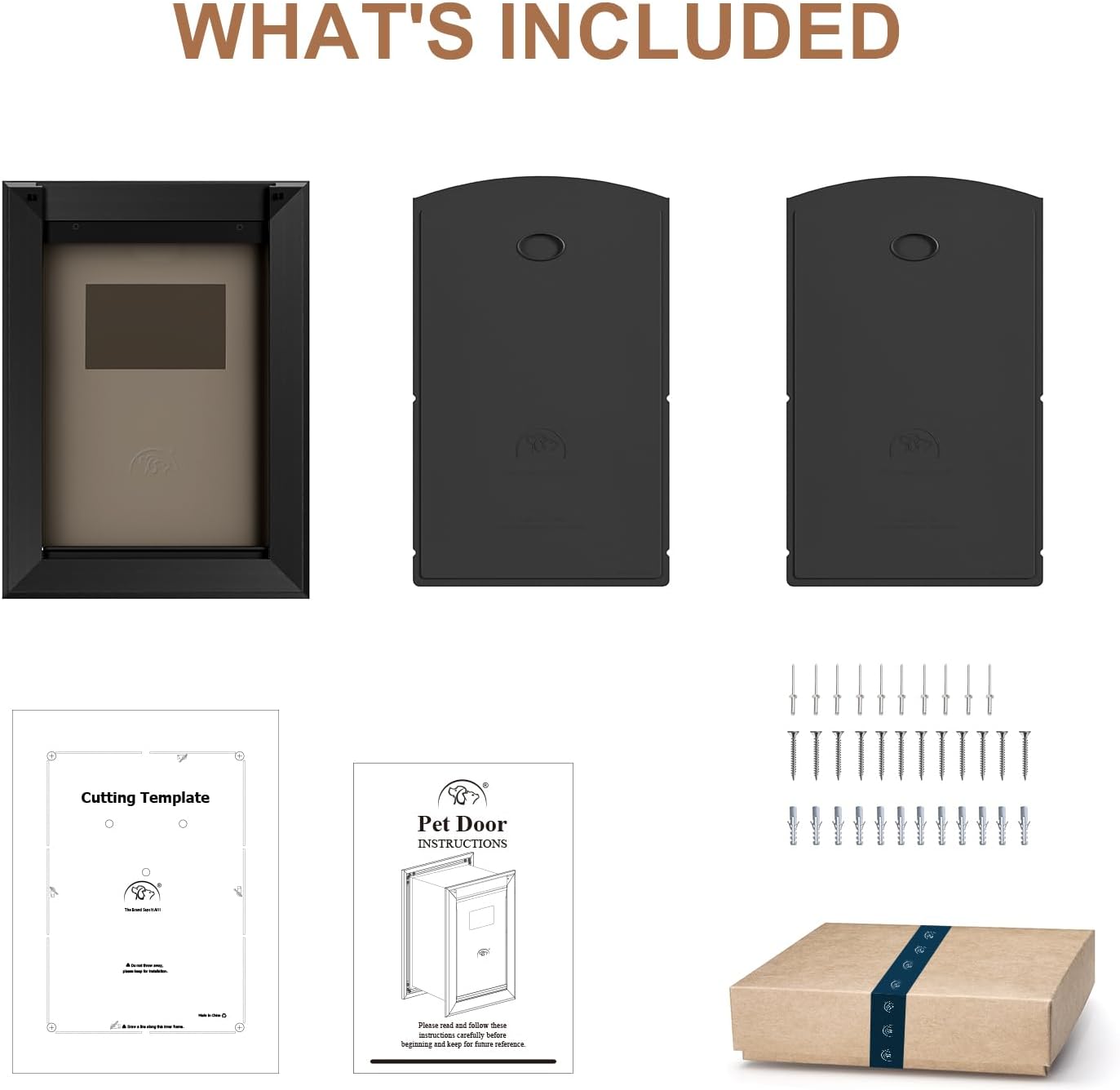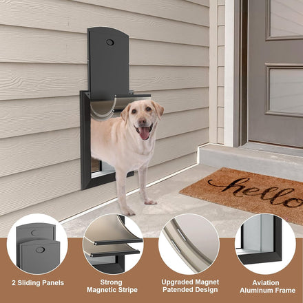 - [Weatherproof and Energy-efficiency]The large dog door is made of aluminium alloy with two flaps and panels for better protection against extreme weather condition.