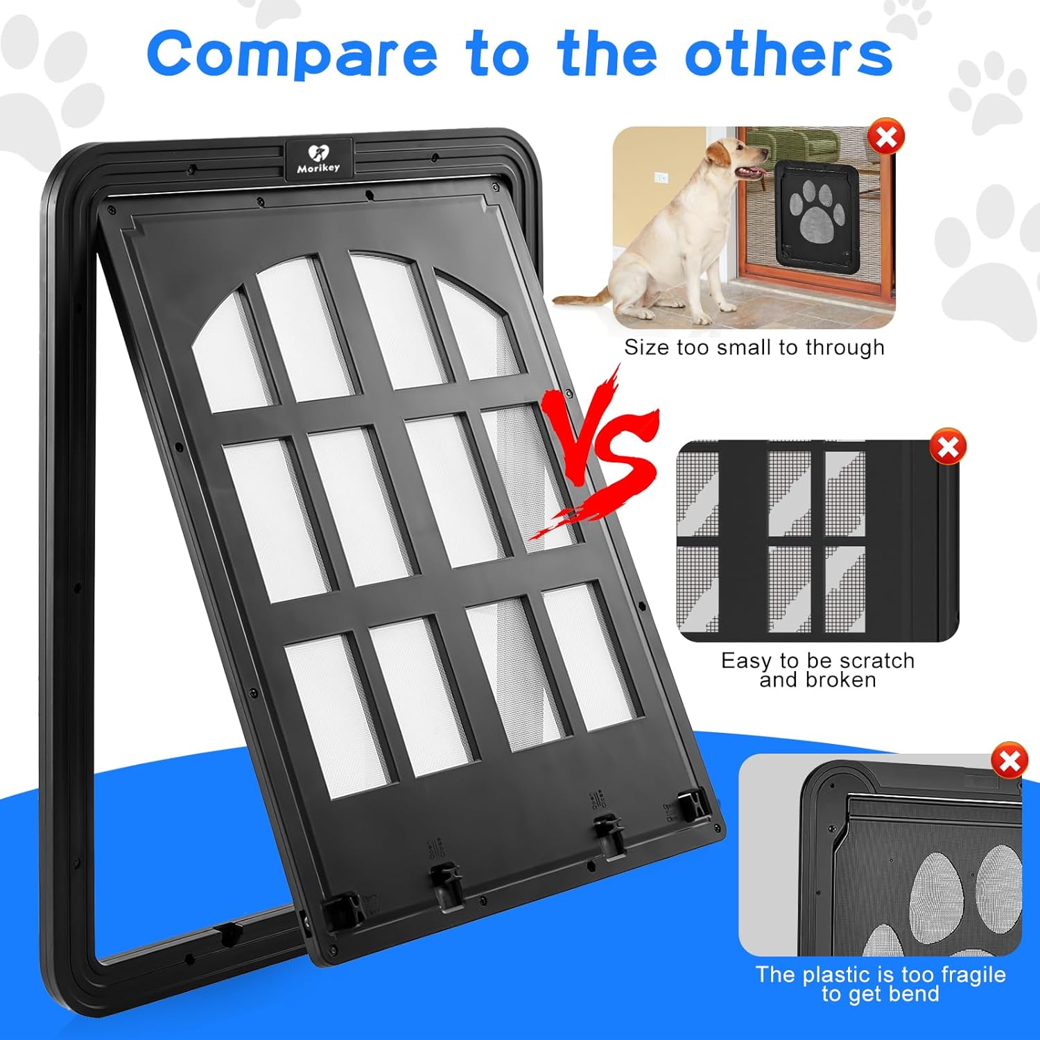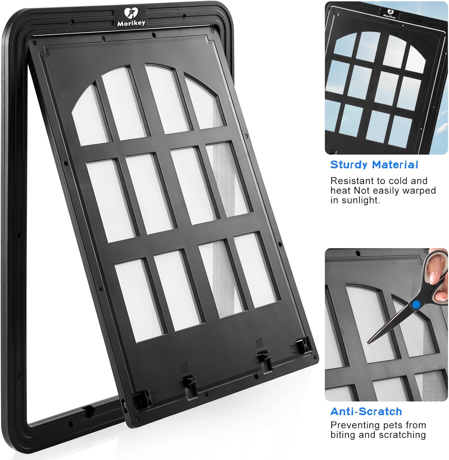 - [Magnetic Self-Closing Pet Screen Door] Morikey Dog Screen door with magnetic flap closures, built-in magnetic can keep the door automatically closed when your pets leave.The self-closing mesh door keeps out other wildlife or insects, as well as keeping pets go outside at night or when you're not home.