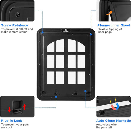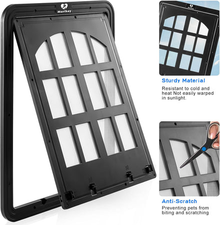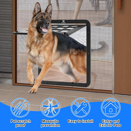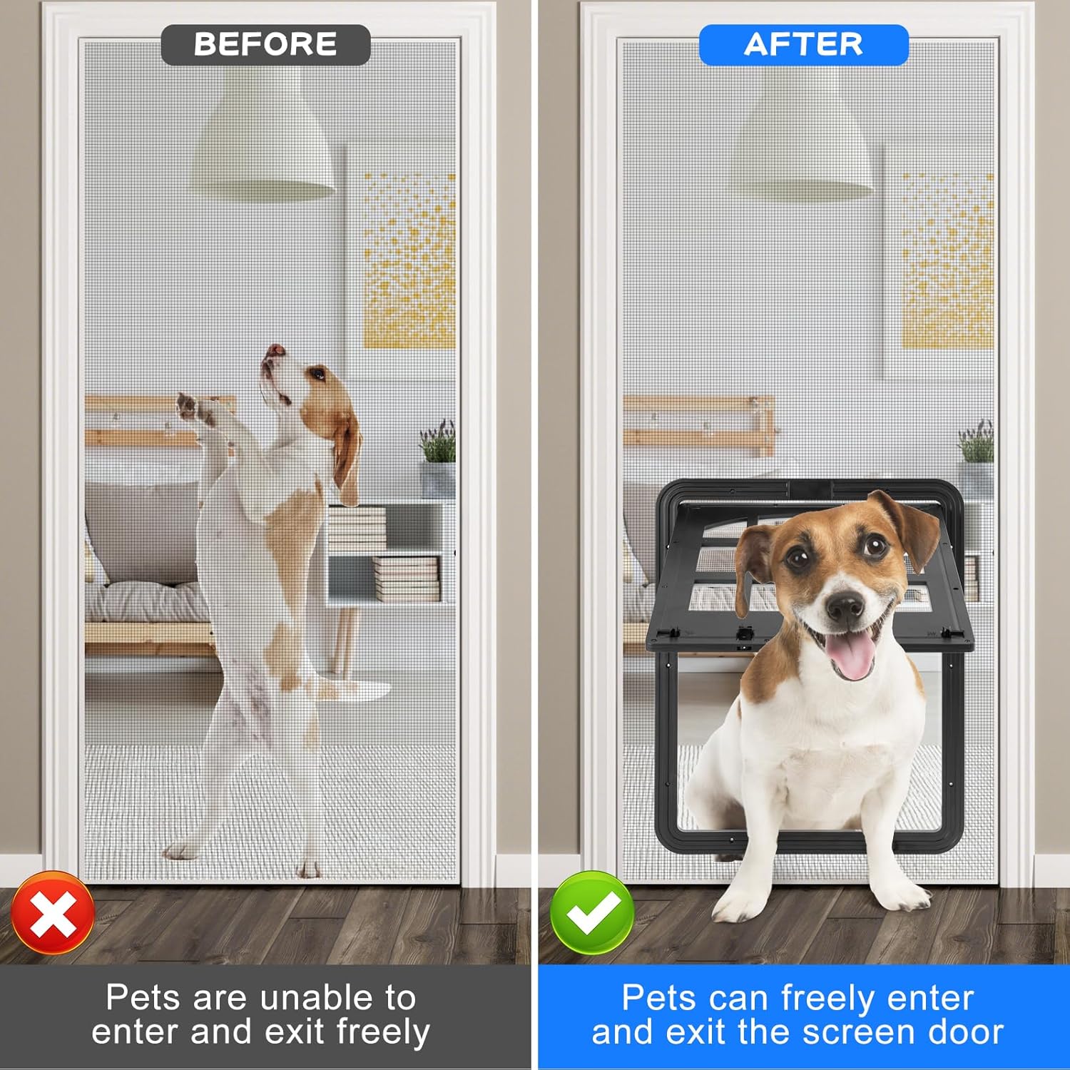 - [Wide Range of Uses] Made of high quality ABS plastic, strong enough and not easy to fall off, you can use it for a long time and don't have to worry about your dog destroying this large dog door for screen door. The pet screen door can be installed on screen doors, windows or any other places with screens. It is very convenient to let your dog, doggy and cat come in and out of indoor or outdoor freely.