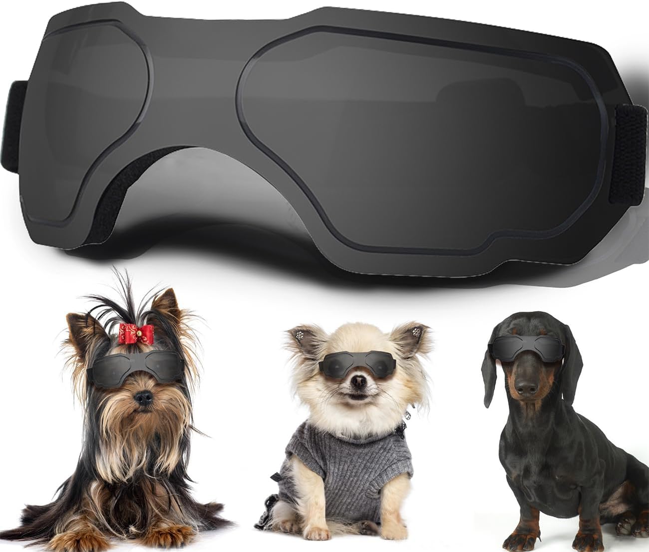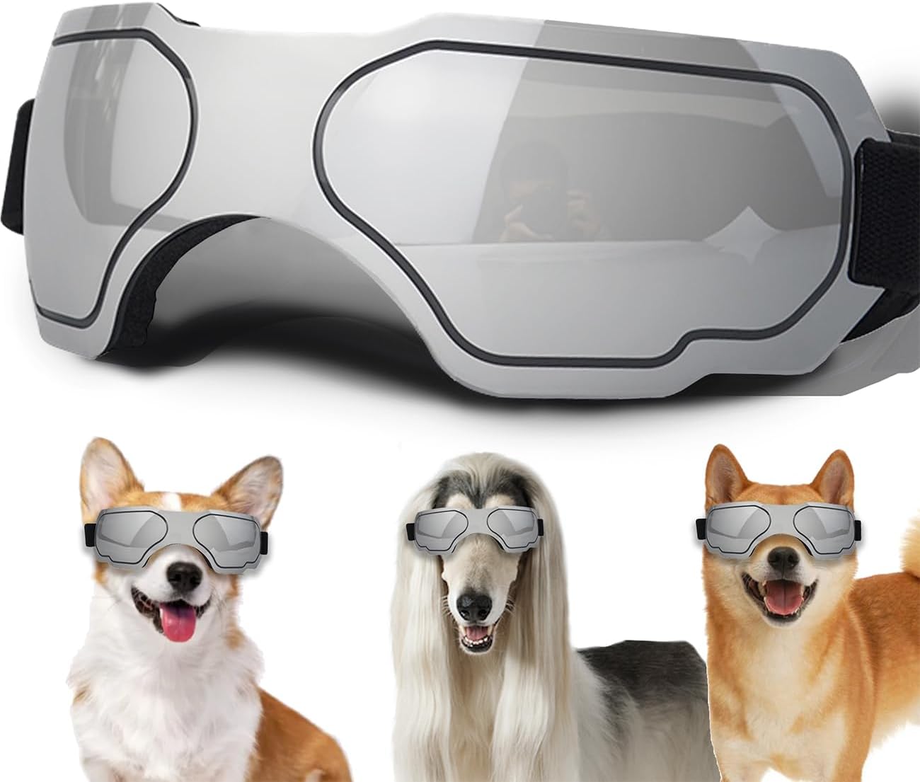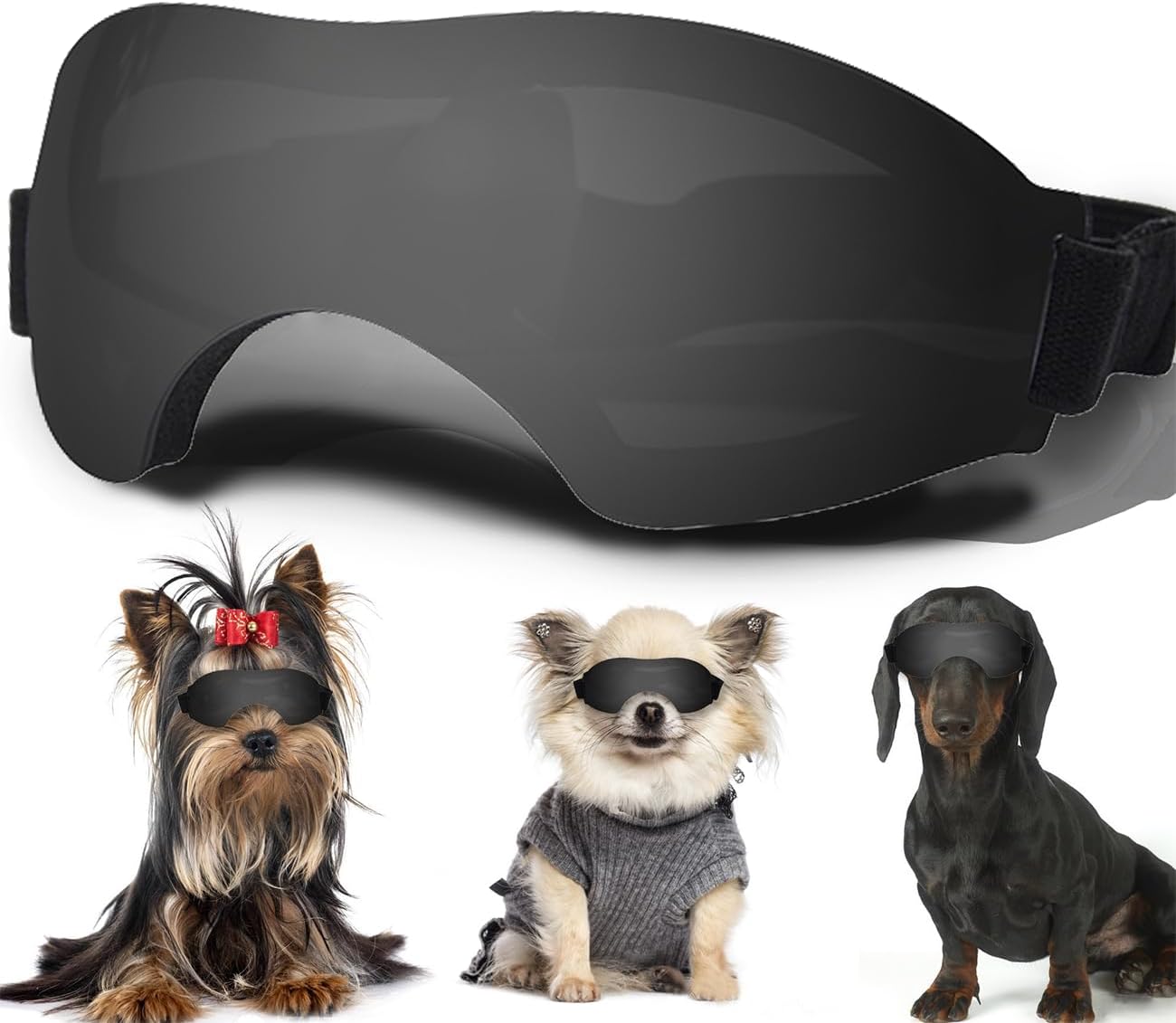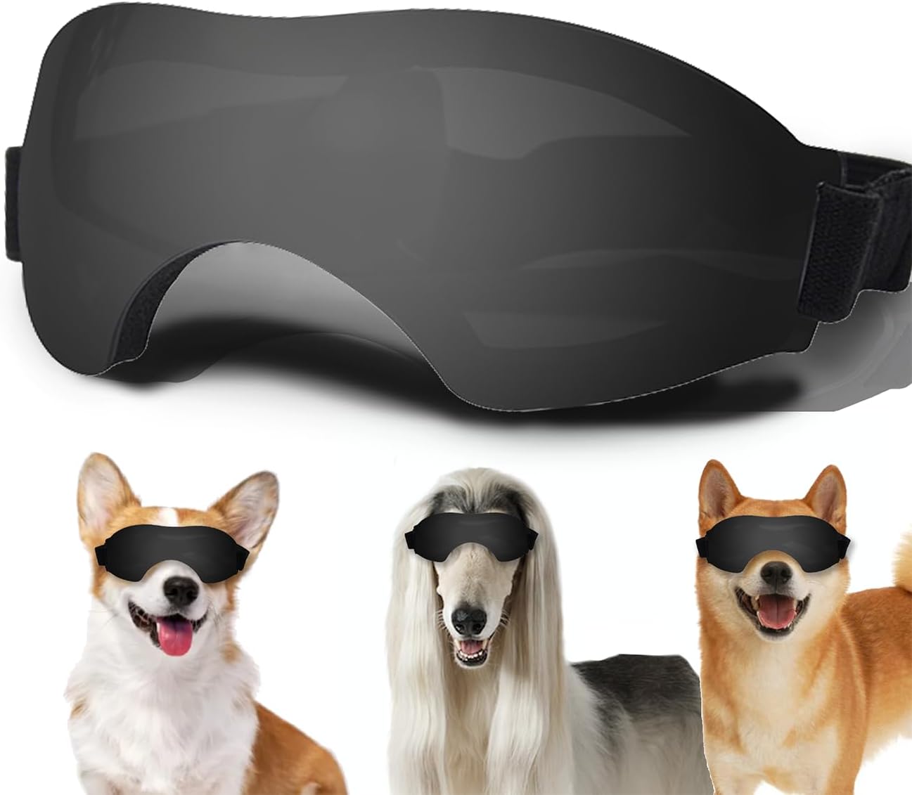 - Premium Material: The lens is made of PC material, the frame is made of soft TPU material, and the side that contacts the dog has a foam pad. UV Protection. Functionality and comfort coexist, and dogs will not feel tired after wearing them for a long time