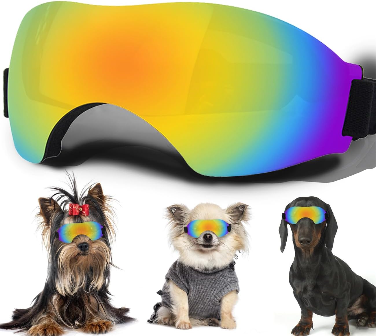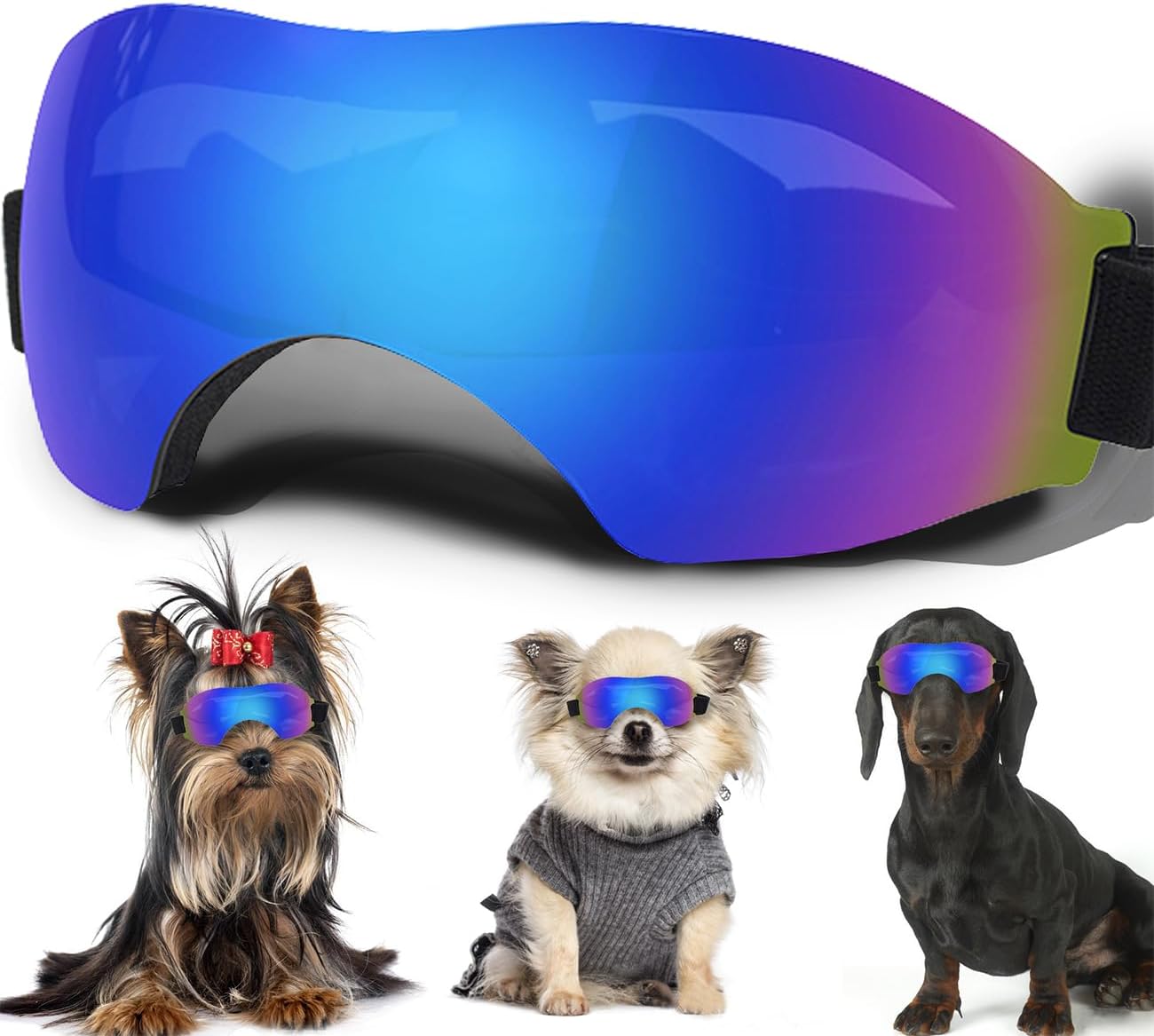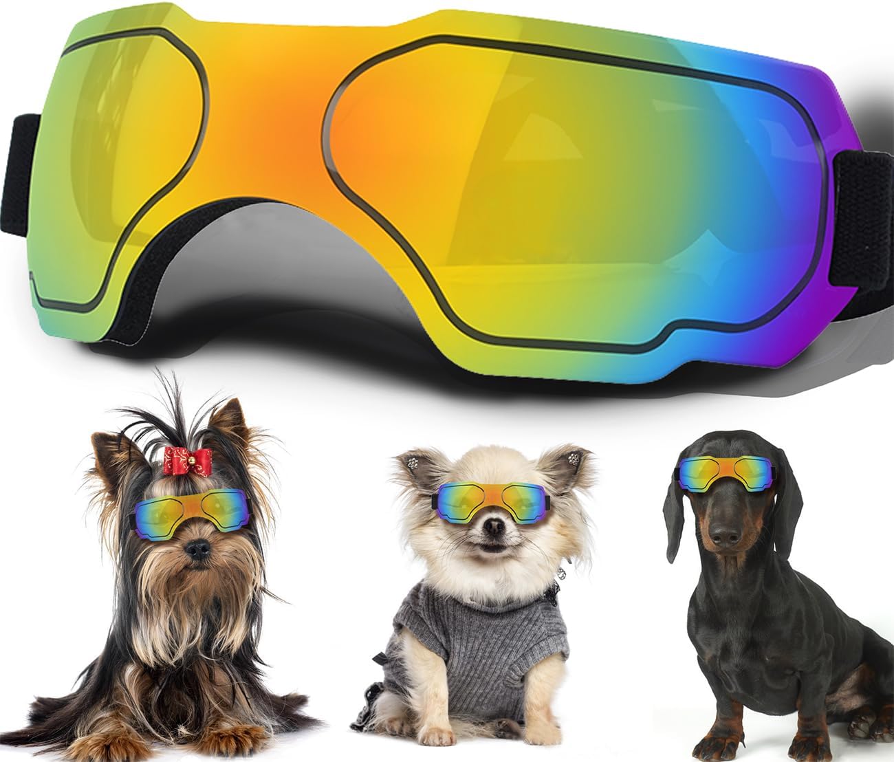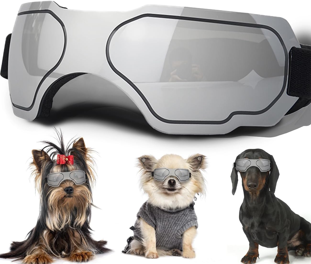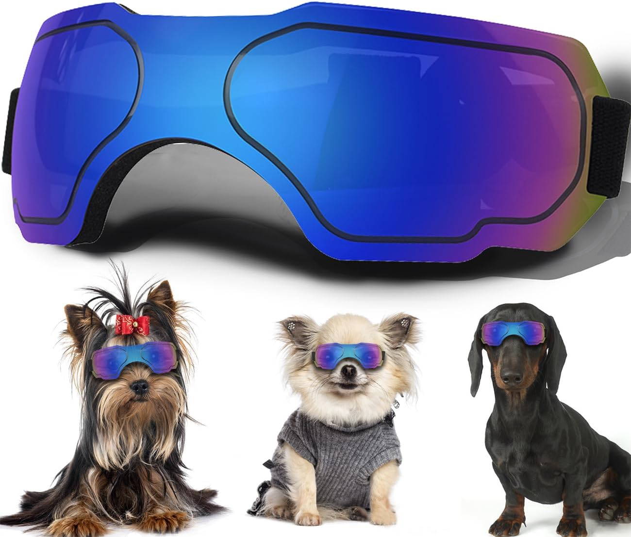 - Premium Material: The lens is made of PC material, the frame is made of soft TPU material, and the side that contacts the dog has a foam pad. UV Protection. Functionality and comfort coexist, and dogs will not feel tired after wearing them for a long time