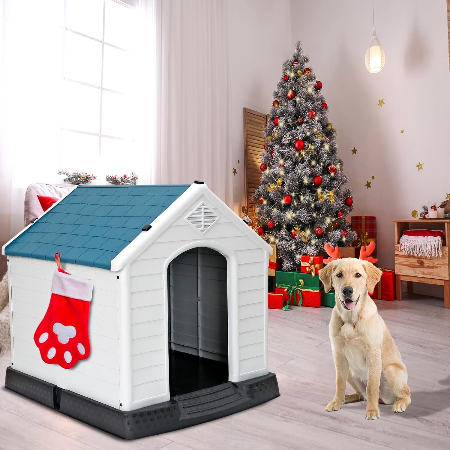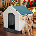 Large Plastic Dog House Indoor Outdoor Durable Ventilate Doghouse for Small Medium Large Dogs Insulated Puppy Shelter w/Air Vents Elevated Floor Waterproof Blue