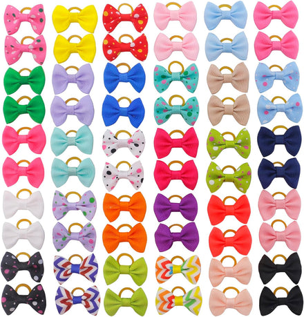 Los lazos con bandas de goma vienen en 30 colores en una variedad de patrones, los lazos son capaces de combinar con mascotas con diferentes atuendos