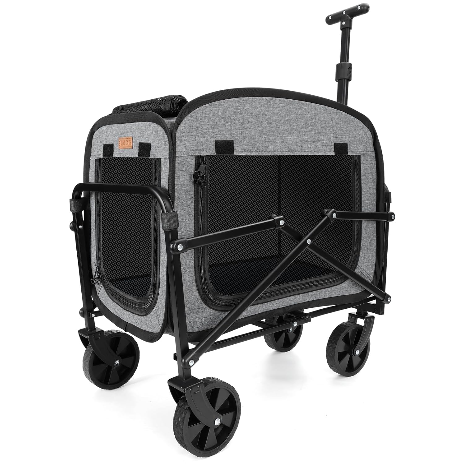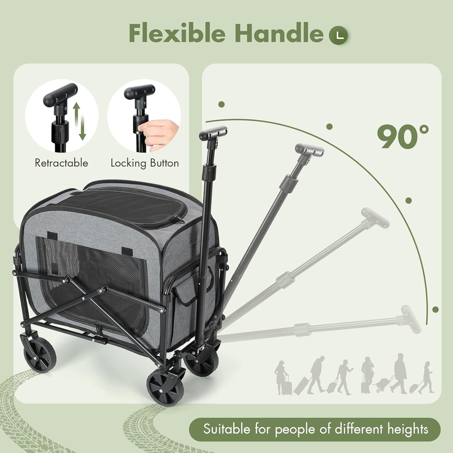 T-handle with adjustable height for comfortable transport, Fully collapsible for trunk or closet storage, One-zipper easy access for stress-free loading, Three-way mesh ventilation system, Soft yet structured design with steel frame reinforcement |