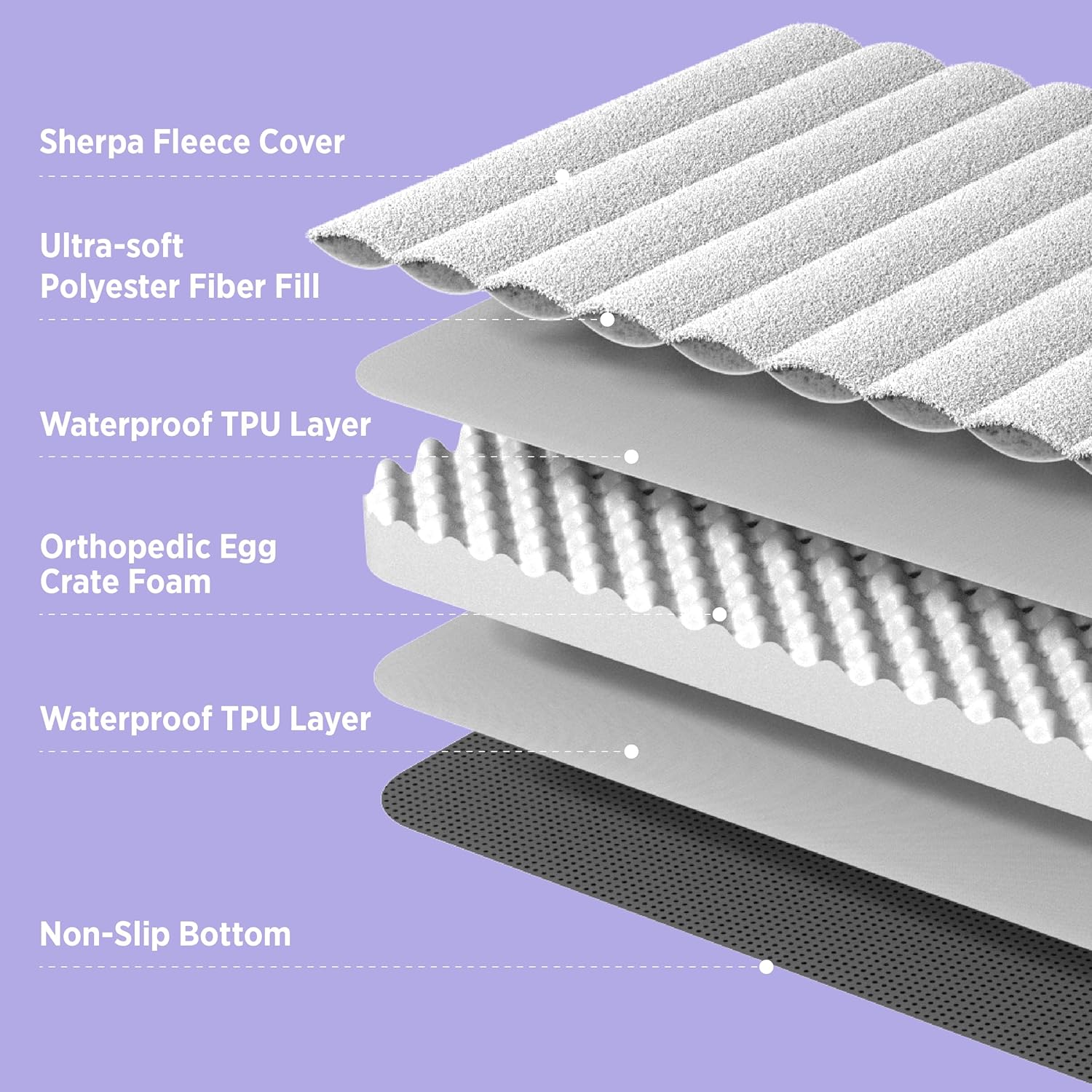 - Pet-Perfect Design: Discover the ultimate relaxation for your pet with our Sherpa Plush Mat! Its classic shape melds seamlessly with our signature design, offering ample space for your furry friend to stretch and snooze in style. Perfect for any home decor, it's a breeze to move around, making it a cozy spot for your pet indoors, outdoors, in a crate, or during travel adventures.