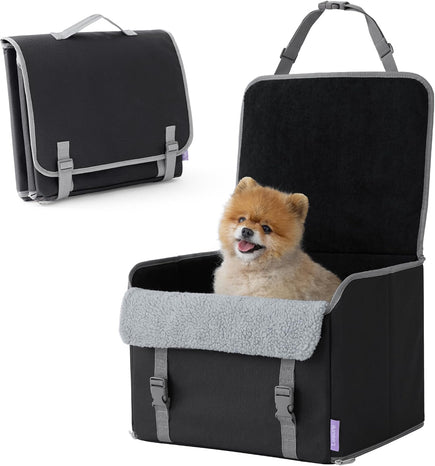 - Easy Storage & Travel Ready: This dog car seat bed is easily foldable, adopting an intuitive storage design that transforms into a briefcase shape. This helpful feature saves storage space when setting the car seat aside. While features like the seat belt loop and adjustable head belt provides a quick to install car setup that’s perfect for on-the-go or for your next adventures.