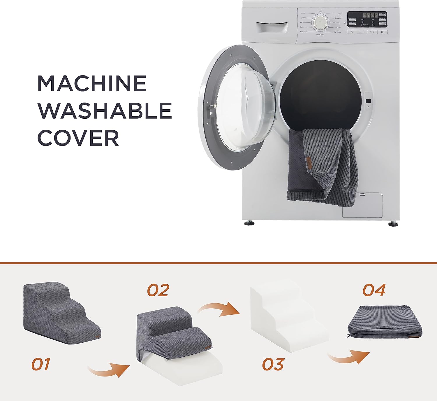 - Easy to Clean: Keeping these pet stairs for dogs fresh and tidy is a breeze. Simply remove the foam core and machine wash the outer cover separately in cold water on a delicate cycle. Please note, the foam core should not be machine washed or dried to ensure long-lasting use and comfort for your pets.