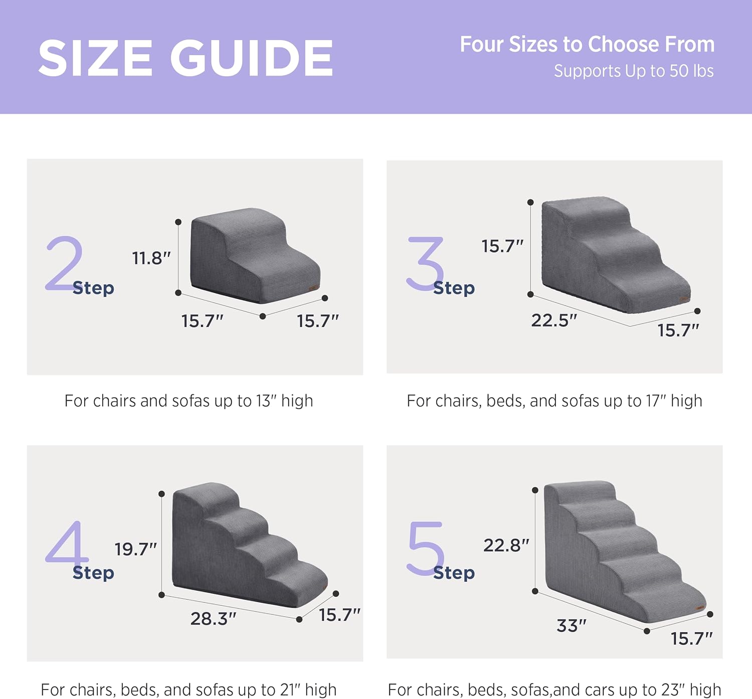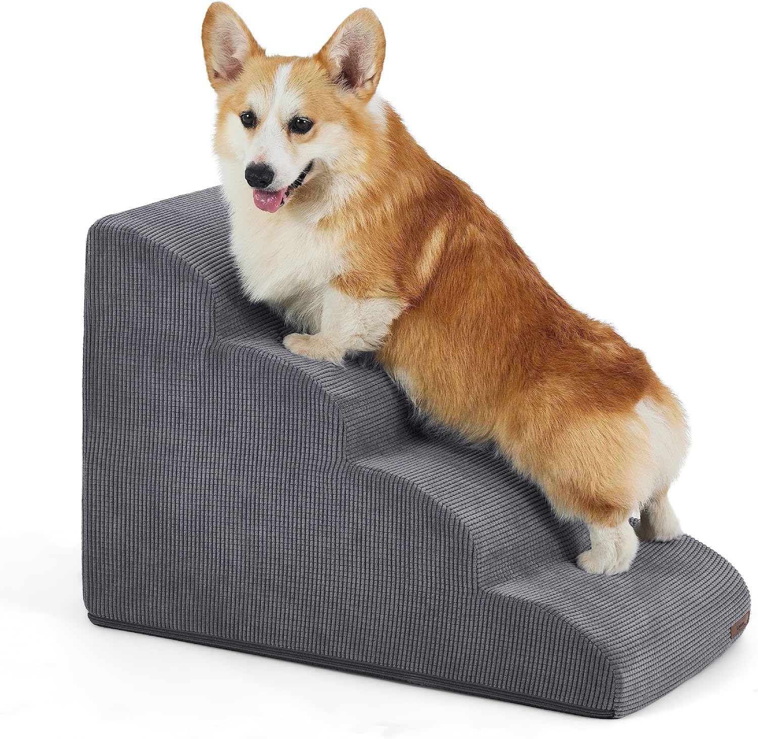 - Durable & Sturdy: These pet ramp stairs feature strong and reliable 33D high-density, lightweight foam, ensuring a robust build that's easy to move while providing stable support for cats and small/medium-sized dogs. The non-slip corduroy pet stair cover adds extra stability, ensuring your pet's safety and preventing any mishaps as they navigate up and down.