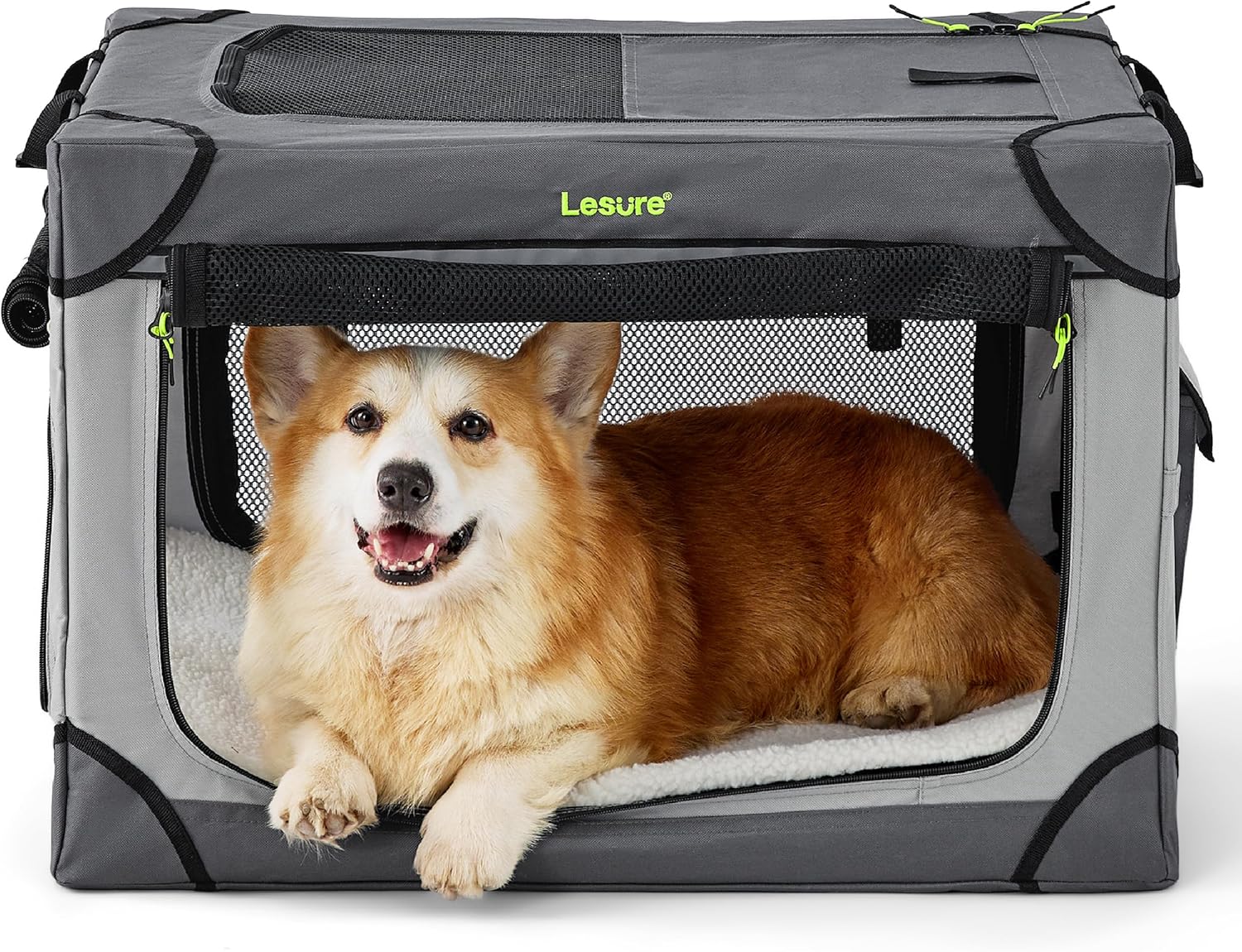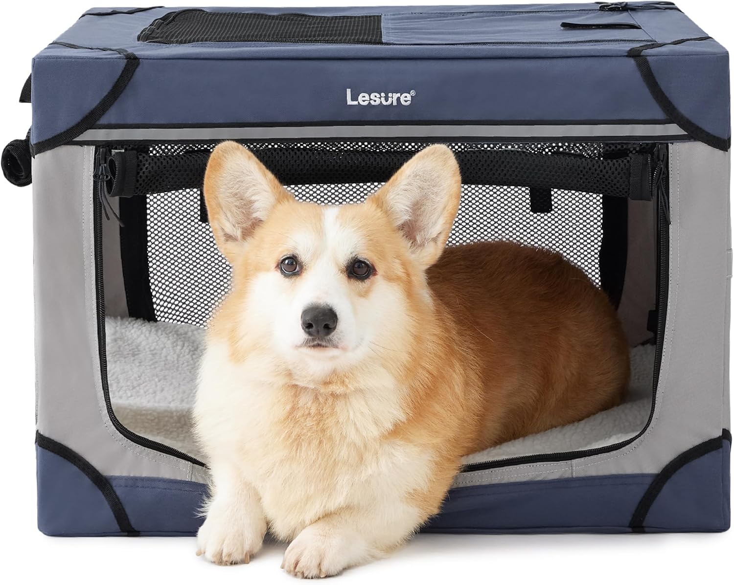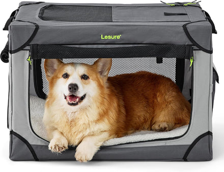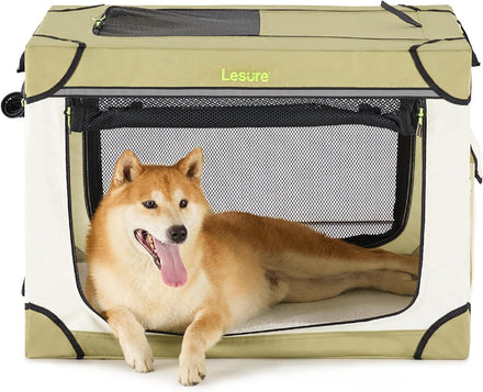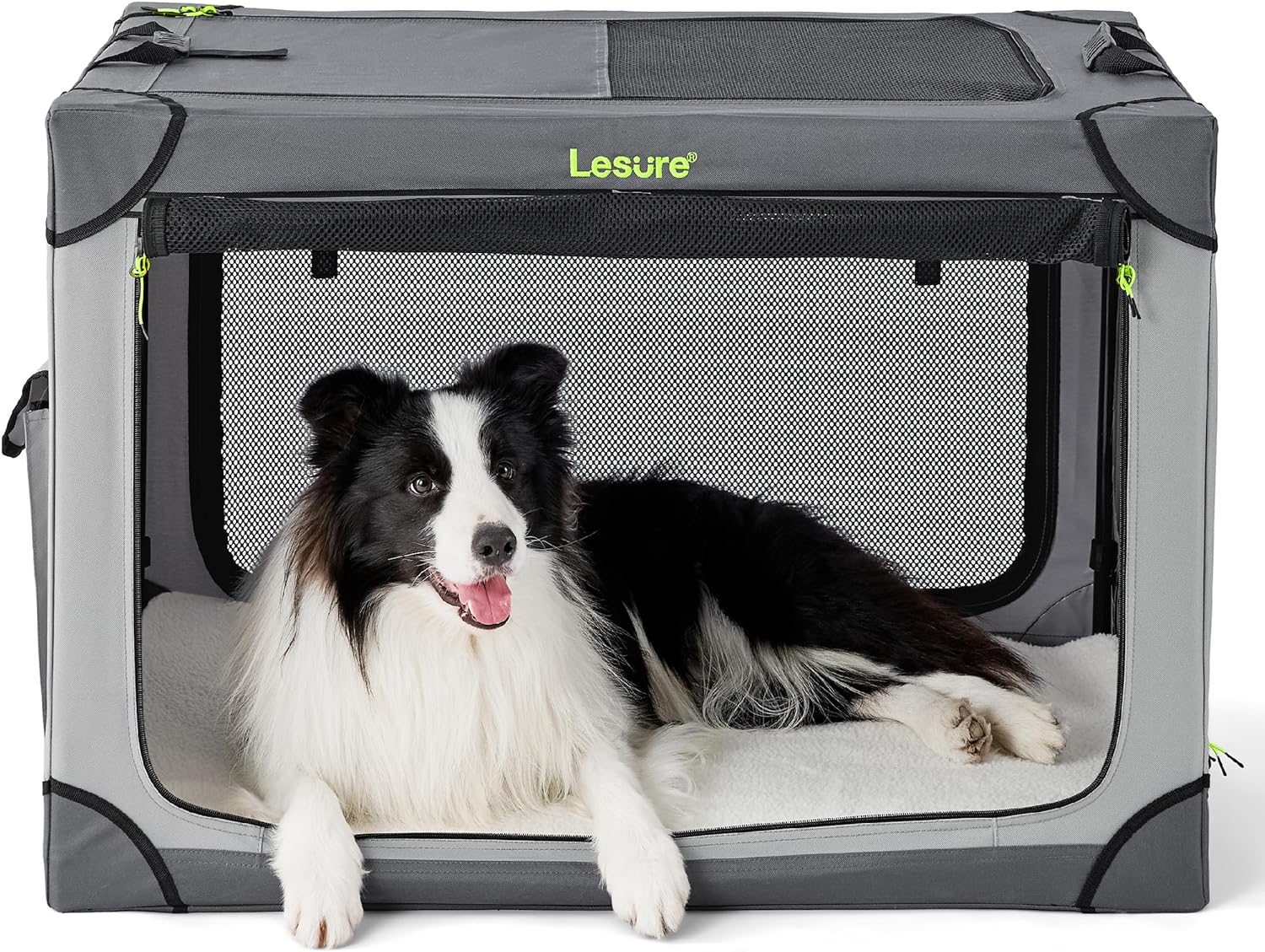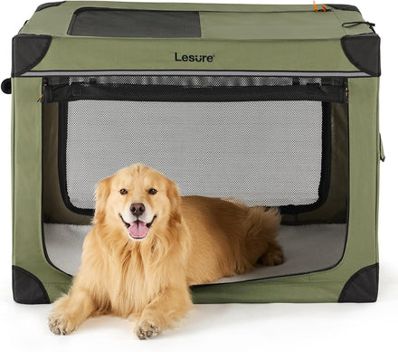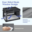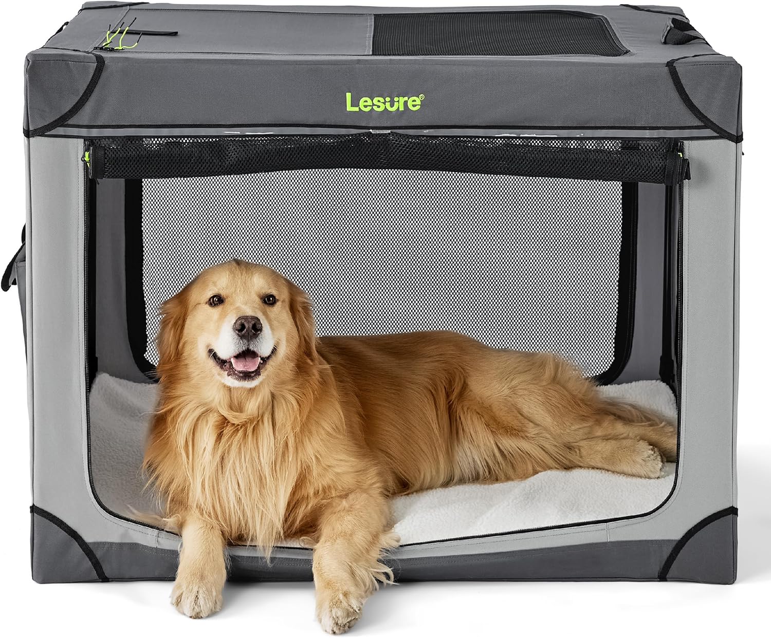 - Enhanced Safety: With a heavy-duty iron frame, this crate maintains its shape and ensures durability. Reflective strips on both sides enhance visibility, keeping your pet safe and visible. The crate is equipped with self-locking zippers, preventing your pet from escaping, while high-density durable mesh adds an extra layer of security. Additionally, an built-in leash further reinforces your pet's safety.