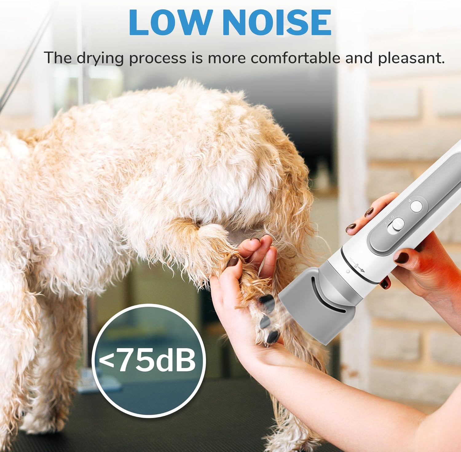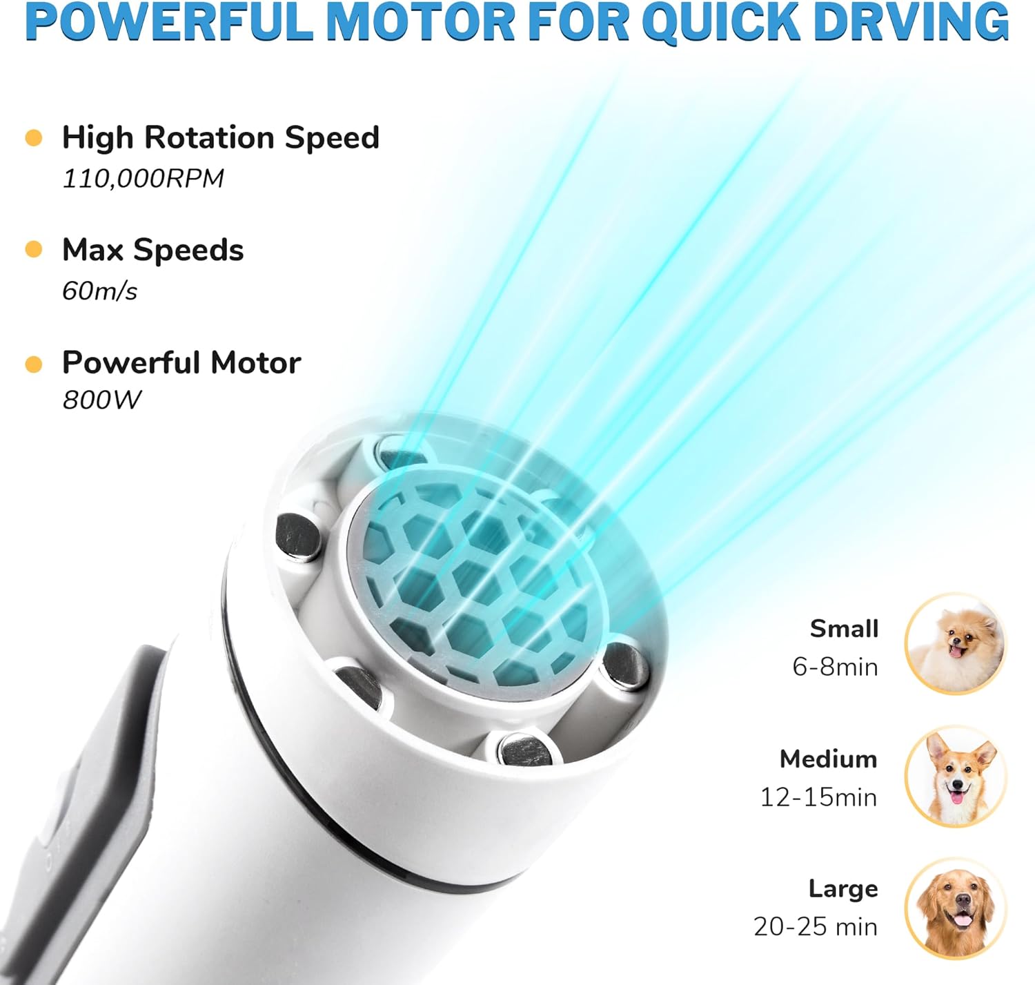 - Lightweight and Portable: Handheld pet hair dryers are one-tenth the size of regular hair dryers and are easy to use and store. Maximum wind speed 62M/S, bare weight 1.2 LBS.It achieves airflow speeds comparable to those of a large grooming blower, and can dry and groom your pet anytime, anywhere, whether at home or on the go.