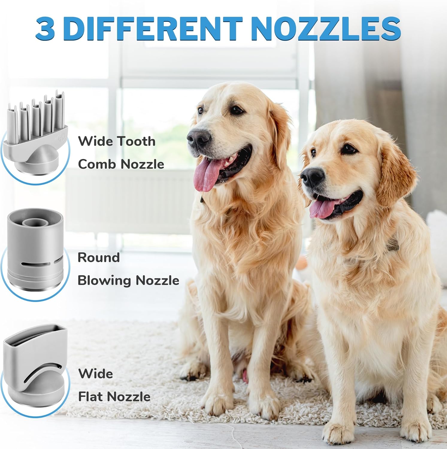 - Smoothing Hair: Portable dog hair dryer comes with 3 different nozzles for all drying needs and can be designed indifferent shapes for your pet. The powerful negative ion function can make ourpet hair smoother, fluffy and shiny, easily untangle knots, and feel smoother to the touch.