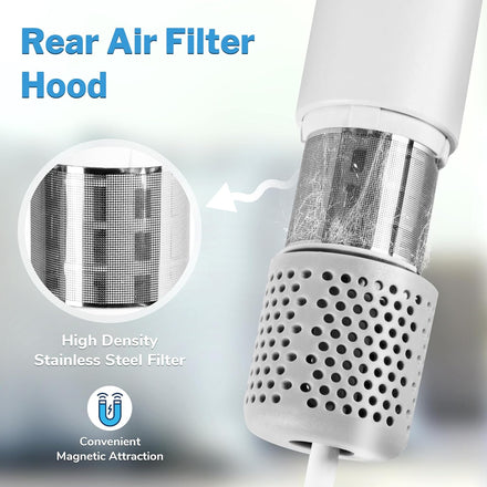 - Clog Prevention: Pet hair dryer adopts a filter system in its bottom air intake, which can prevent hair blockage from the source and extend the service life of the product. (Note: The filter cover needs to be cleaned and maintained in time to avoid debris blockage and ensure smooth air intake)