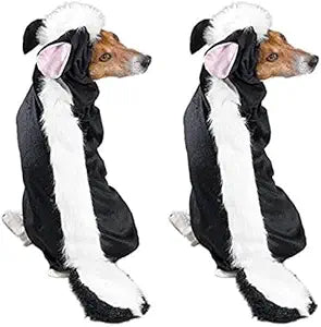 - This black and white skunk costume lets dog dress up like they skunks they love to hunt