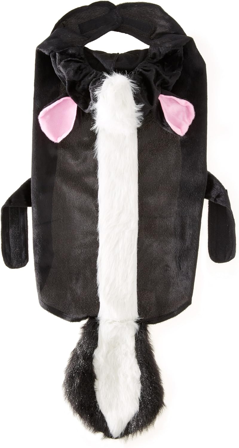 Product Description Little stinker skunk costumes will turn any dog into the life of the party. This black and white skunk costume lets dogs dress up like they skunks they love to hunt. Your customers will love dressing their dogs for photo opportunities and parties in these hilarious and charming costumes. Made of durable, high-quality polyester fabric, with velcro closures. It is packaged in a snap-closure polybag with an insert. Hand wash in cold water, line dry. Available in medium size and measures 16-inch length. Medium size fit for bichon frise, beagle, cocker spaniel, corgi, scottish terrier breeds. brand_description Sizing Guide: Measure the length of your pet's back from the base of the neck to the base of the tail. If the measurements is between sizes, or if your pet has a stouter build, select the next size up for proper fit