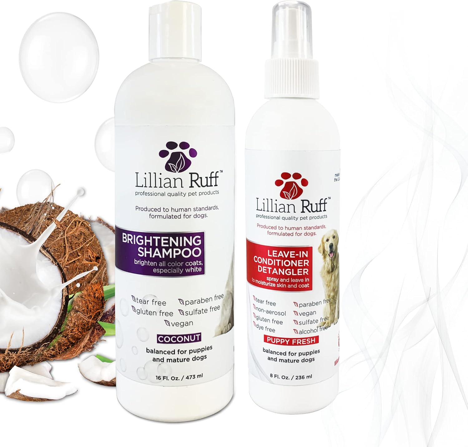 - A Brand Used by Professionals – Lillian Ruff serves professional vets and groomers all over the world thanks to our gentle formula and quality ingredients. Everything at Lillian Ruff is produced to human standards and formulated for Pets.