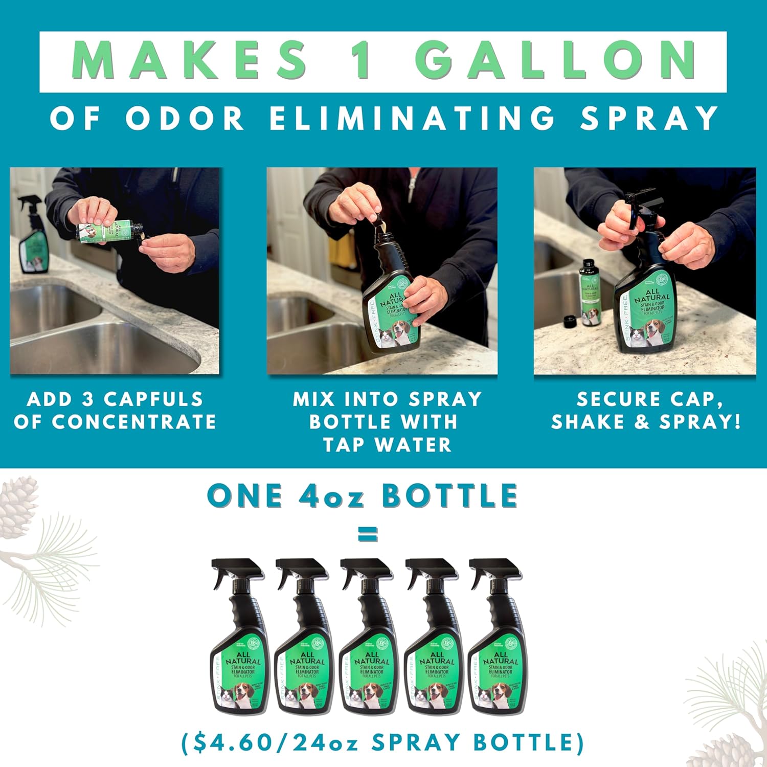 - Hace 1 galón. Mezcla esta botella concentrada de 4 onzas en cinco botellas de spray de 24 onzas. Los mejores suministros de limpieza enzimática para perros y gatos de todas las edades