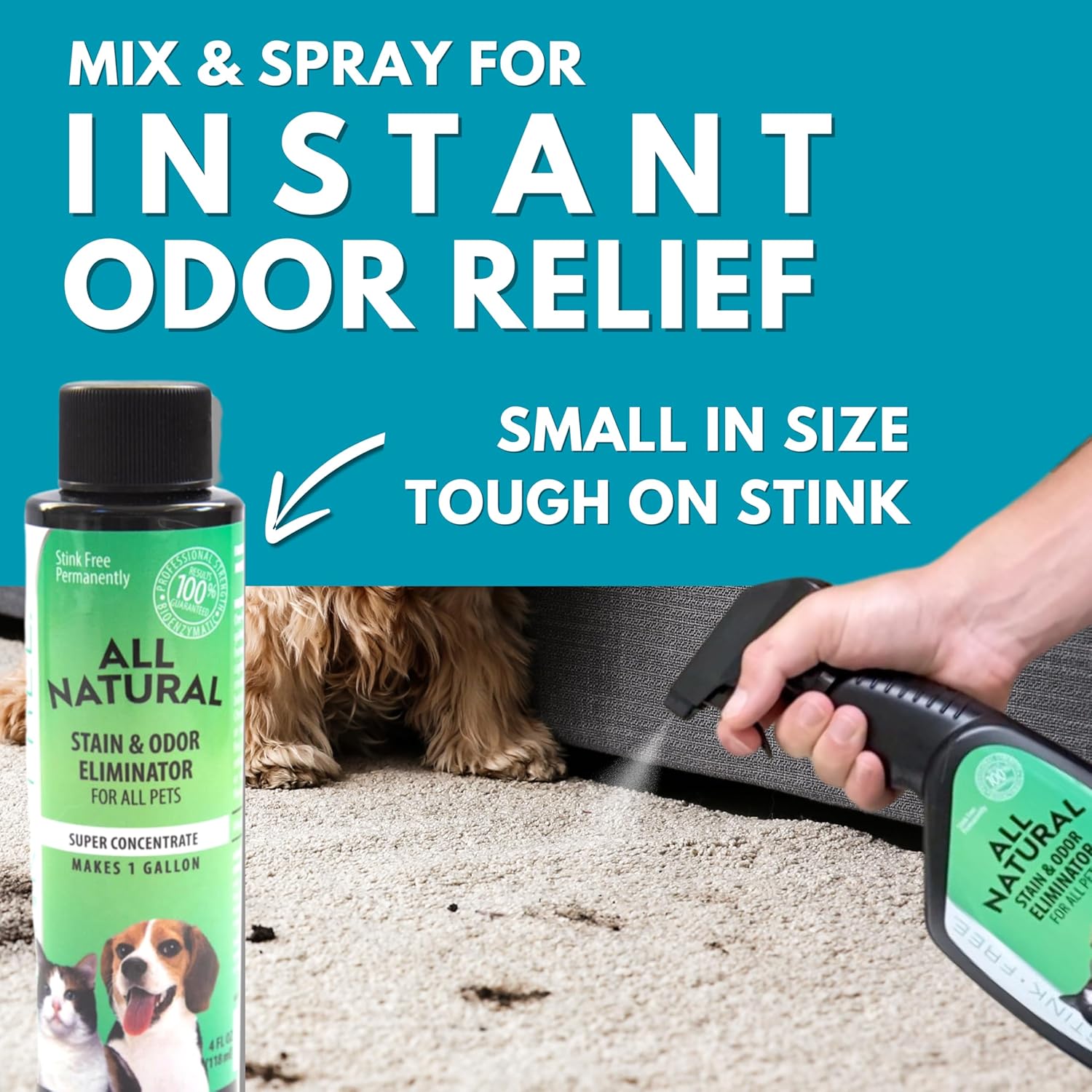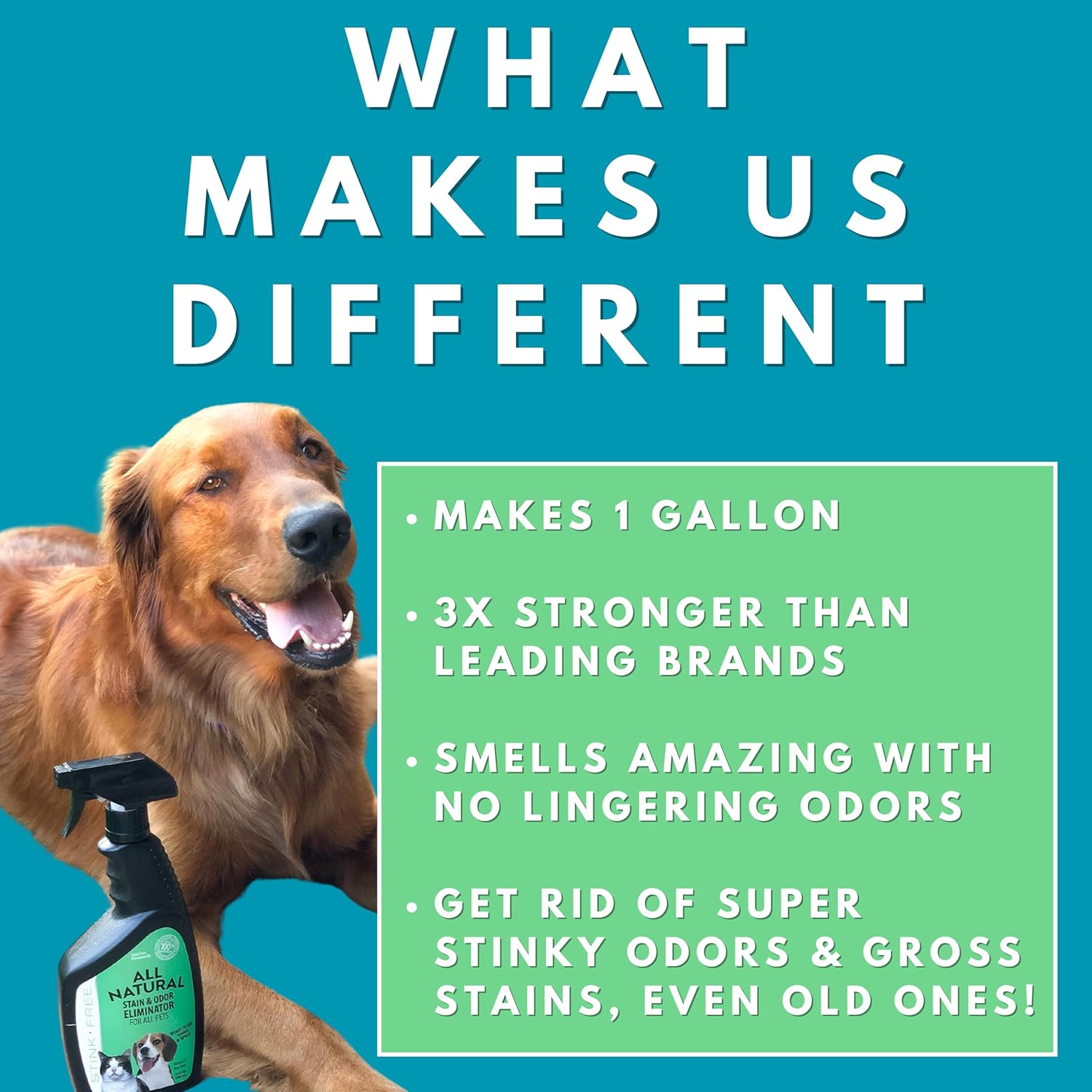 Incluso las mascotas que se comportan mejor tienen accidentes, así que asegúrate de estar listo con el eliminador de manchas y olores totalmente natural de Stink Free.