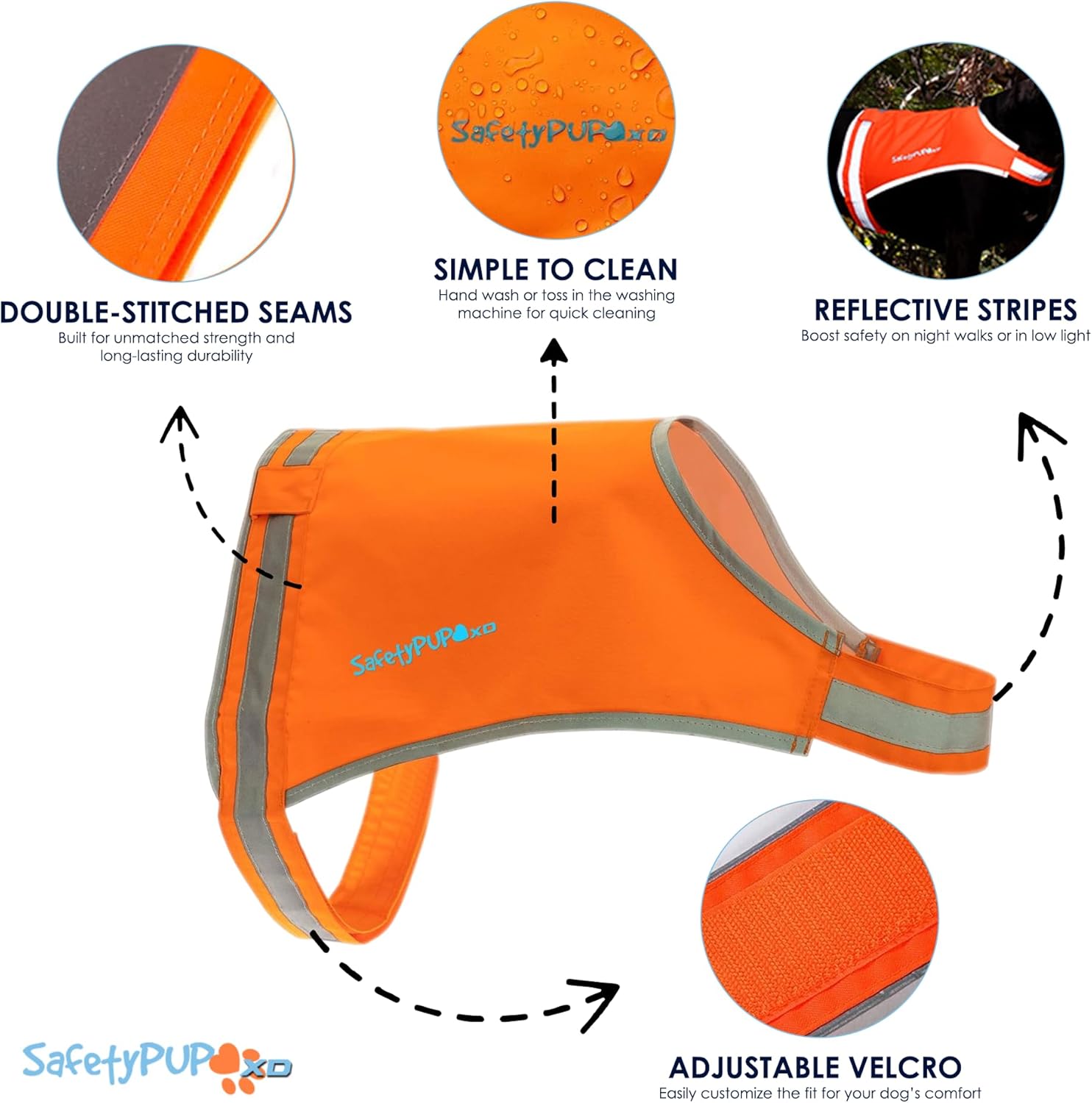 - ⭐ EASE OF USE – Built with strong industrial hook and loop fasteners, the SafetyPUP Lite Vest is easy to slip on and stays securely in place. Just keep the neck strap fastened and wrap the belly strap for a quick, hassle-free fit.