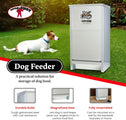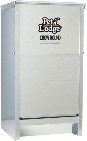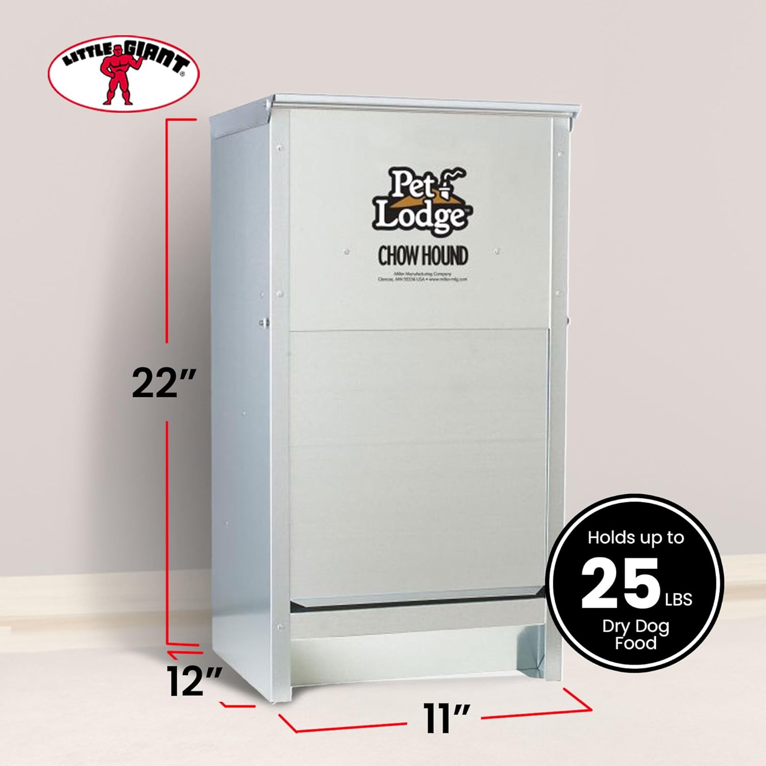 Let storing your dog's food be a problem of the past and say hello to major convenience with the Little Giant Automatic Dog Feeder Chow Hound. This automatic dog food dispenser not only feeds your beloved pet, but also acts as a storage device for your little ones' favorite snacks. Ideal for all kinds of dog breeds of all shapes, breeds, and sizes. You and your dog never had this easy. Safely store dry dog food and feed it from the same chew-proof container. The Chow Hound Automatic Dog Feeder is manufactured from tough galvanized steel for durability and rust resistance. The magnetized door stays shut until your dog nudges it open, keeping unwanted pests out. A specially angled chute provides a steady food flow on demand. Food stays fresh, dry, and pest-free. The feeder can be mounted on a wall by the backside keyholes or frame (not included). The Automatic Pet Feeder comes fully assembled and can hold 25 pounds of dry dog food. Make your beloved pets feel loved, appreciated, and cared for by giving them great stuff such as this automatic feeder for dogs. Great for indoor or outdoors, this automated dog feeding station can easily pass as one of your essential pet food and supplies. The Little Giant Automatic Dog Feeder Chow Hound will surely become your dog's new best friend for years to come.