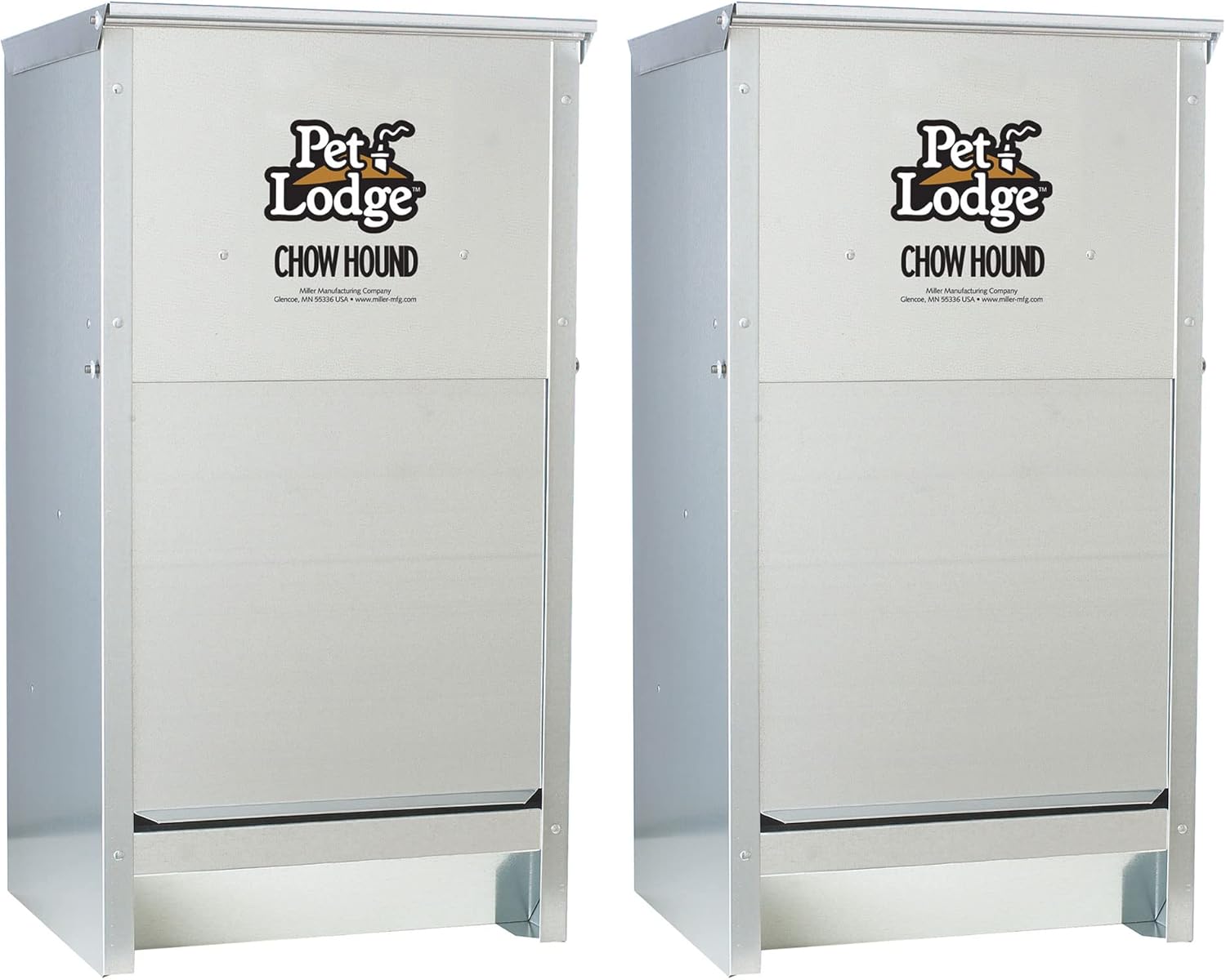 - Little Giant ChowHound Automatic Dog Feeder stores dry food and feeds dogs from the same chew-proof container, giving your pets some nice treat and uplift their spirit