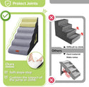- Dog Stairs - Easy to Up and Down: Our dog stairs for high bed helps your small furry friend more convenient to get on and off bed or couches. Compared with the dog stairs that has sharp angle, the soft slope design is more friendly for the pets' knee in their many jumps, protects leg joints