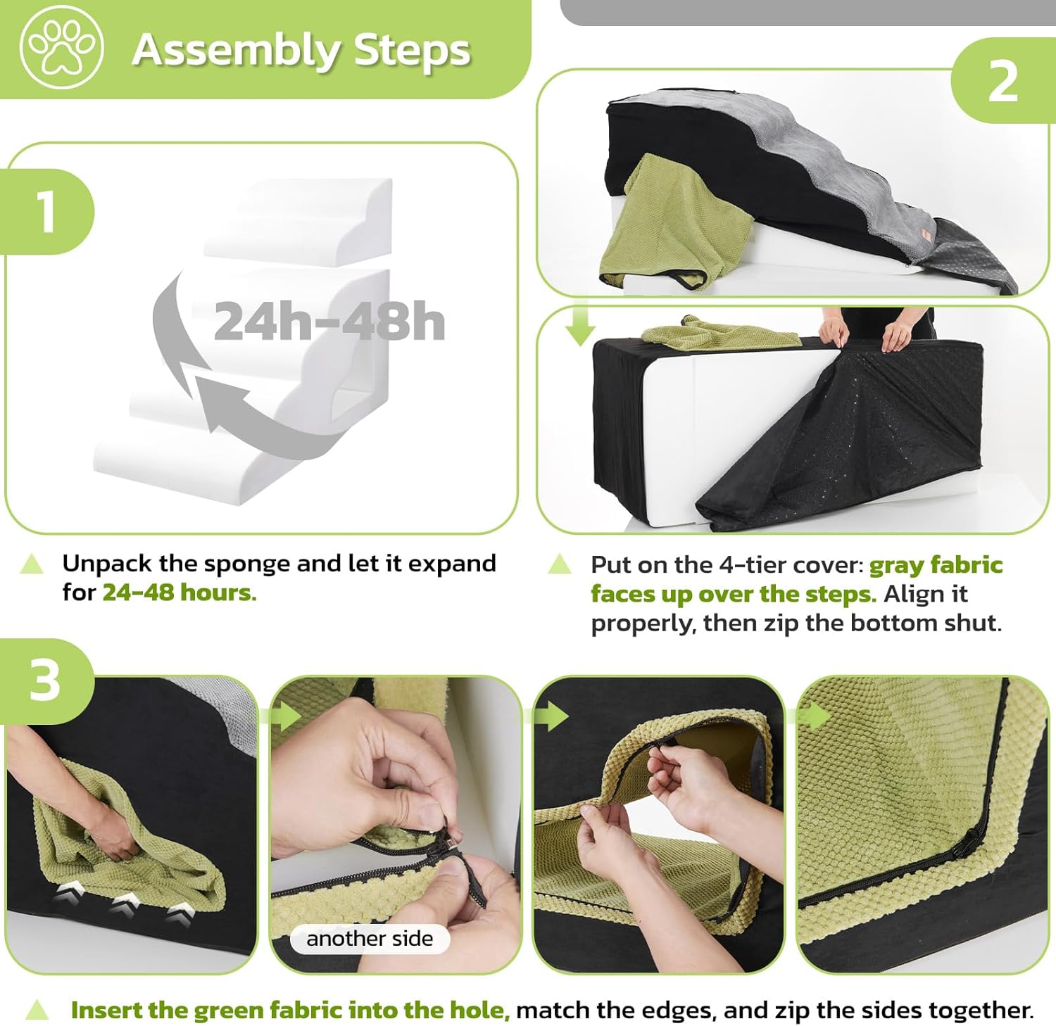 - Special Note: Our dog steps for bed are vacuum compressed into packaging. The sponge needs some time to rebound because the transportation period is too long. Generally, it can fully rebound within 24-48 hours. The higher the temperature, the faster the rebound speed. Suitable for pets weighing less than 50 pounds