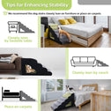 In order to provide a safer environment to get on bed for dogs, we chose high density sponge material with quick rebound and silicone anti-slip bottom. It keeps the dog ramp from sliding and collapsing while the dog is using it.