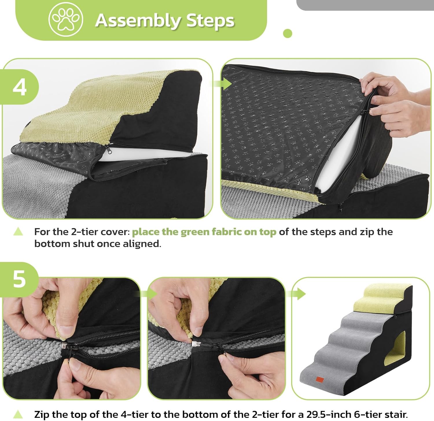 - Easy to Assemble and Washable: Our pet stairs for high bed is easy to assemble and the ramp cover is removable, machine washable and reusable. The corn grain corduroy stairs cover is more scratch-proof and friction resistant from dogs' paw than other covers