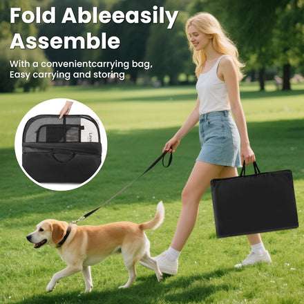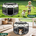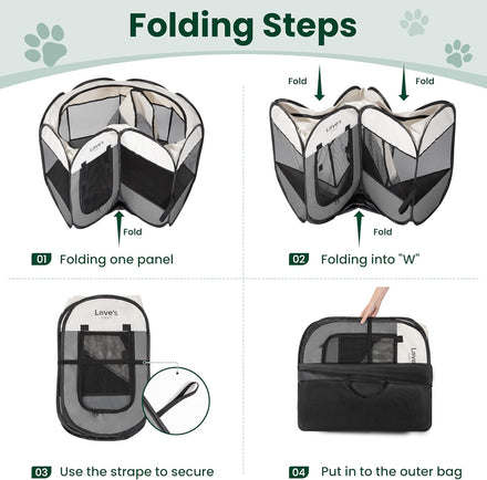 - No Assembly Required and Easy to Store: The Portable Pet Play Pen comes along with a convenient carrying case that can easily store your playpen. It takes seconds to open the dog playpen from folded storage bag, no assembly required. And it's also easy to fold back flat when not in use. Our lightweight portable pet playpen can be used indoors, outdoors, traveling, camping, etc.
