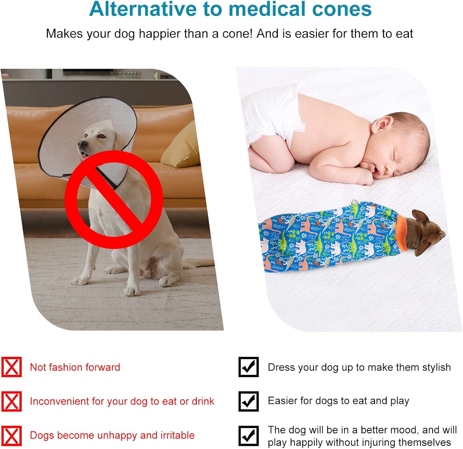 Helps Reduce Anxiety - This dog pajamas for dogs perfect fit applies gentle pressure,rainy days thunderstorms or separation anxiety,the soft touch will make the dog feel warm,secure and calm.