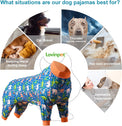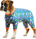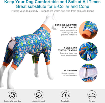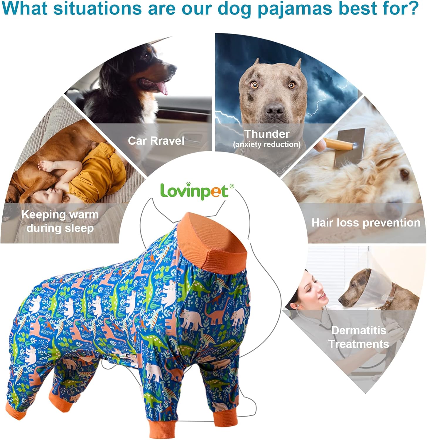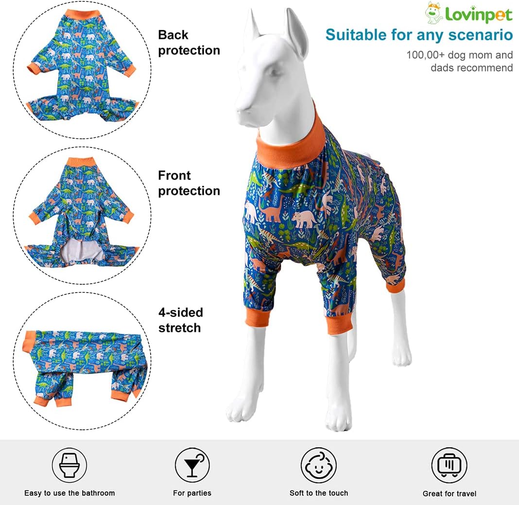 LovinPet Large Breed Dog Clothes Pajamas, Wound Care/Post Surgery Full Coverage Shirt, Dinosaur Land Blue Print, Lightweight Stretchy Knit Pullover Dog Onesie, Pet Pajamas for Dogs, Pet PJ's, L
