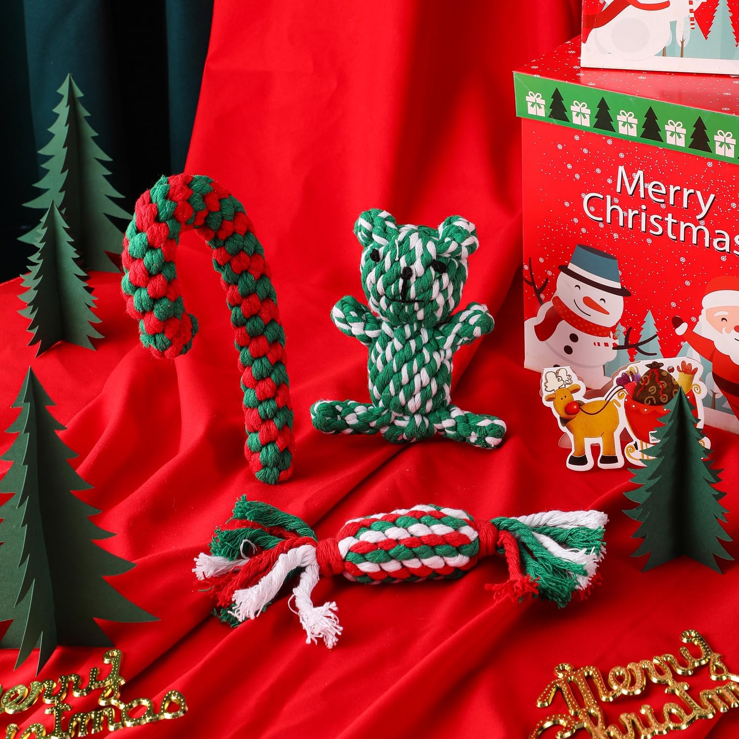 - Our LUCKITTY Dog Rope Toy is the perfect Christmas gift for your furry friend! Its Christmas-style design with traditional elements, including a charming red Crutch shape and vivid green candy design, will surely bring holiday cheer to your dog's playtime.