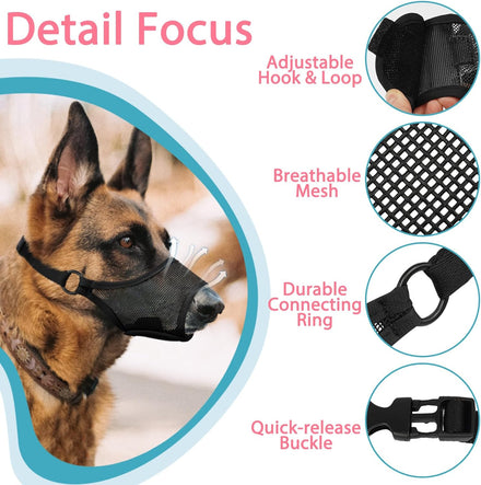 - Zero Burden for a Comfortable Fit: Say goodbye to unnecessary stress! Crafted from lightweight mesh, our mesh dog muzzle is built to withstand the wear and tear of daily use. With zero burden, our dog mouth cover ensures a positive experience for both you and your furry friend.