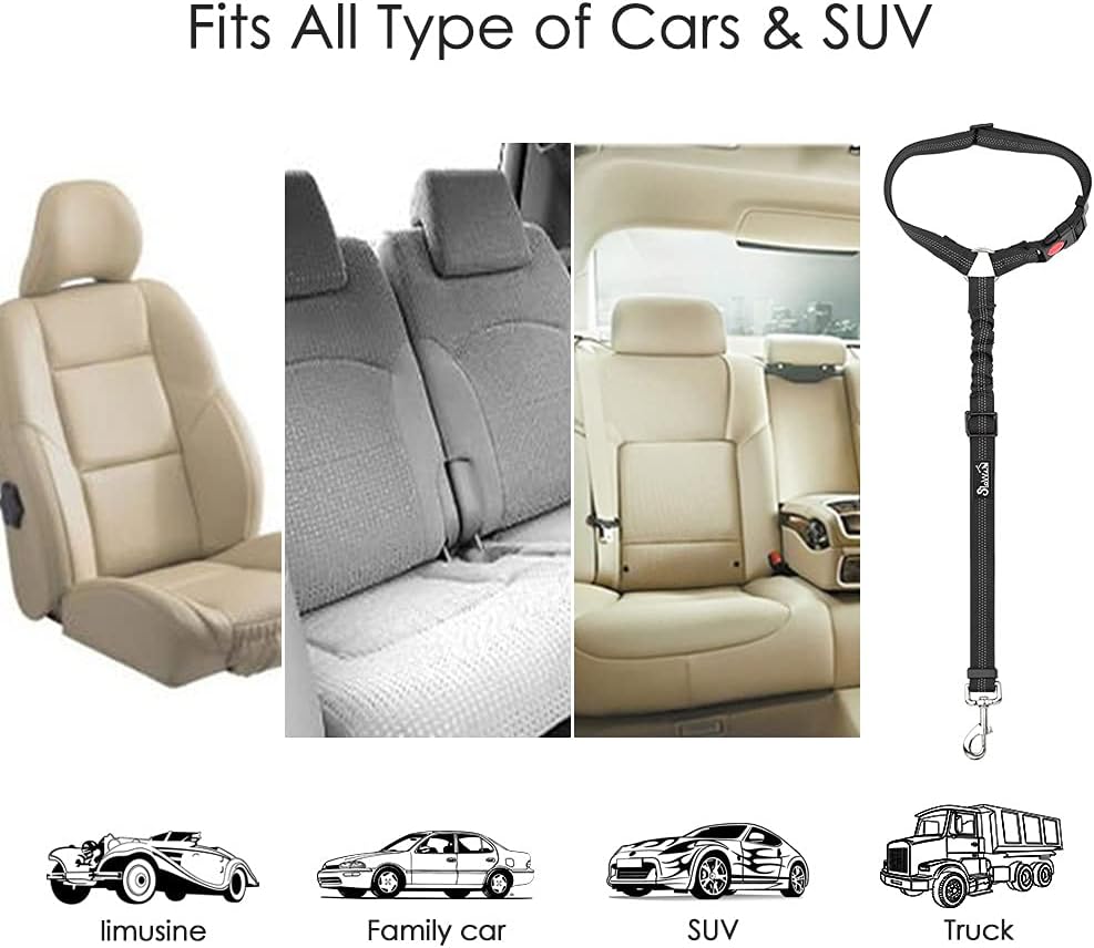 Lukovee 2 Pack dog seat belt is designed with headrest restraint which can be used in different cars, vans, and trucks etc. It can be connected with dog harness and dog collar. It’s not only a pet seatbelt, but also a general leash.