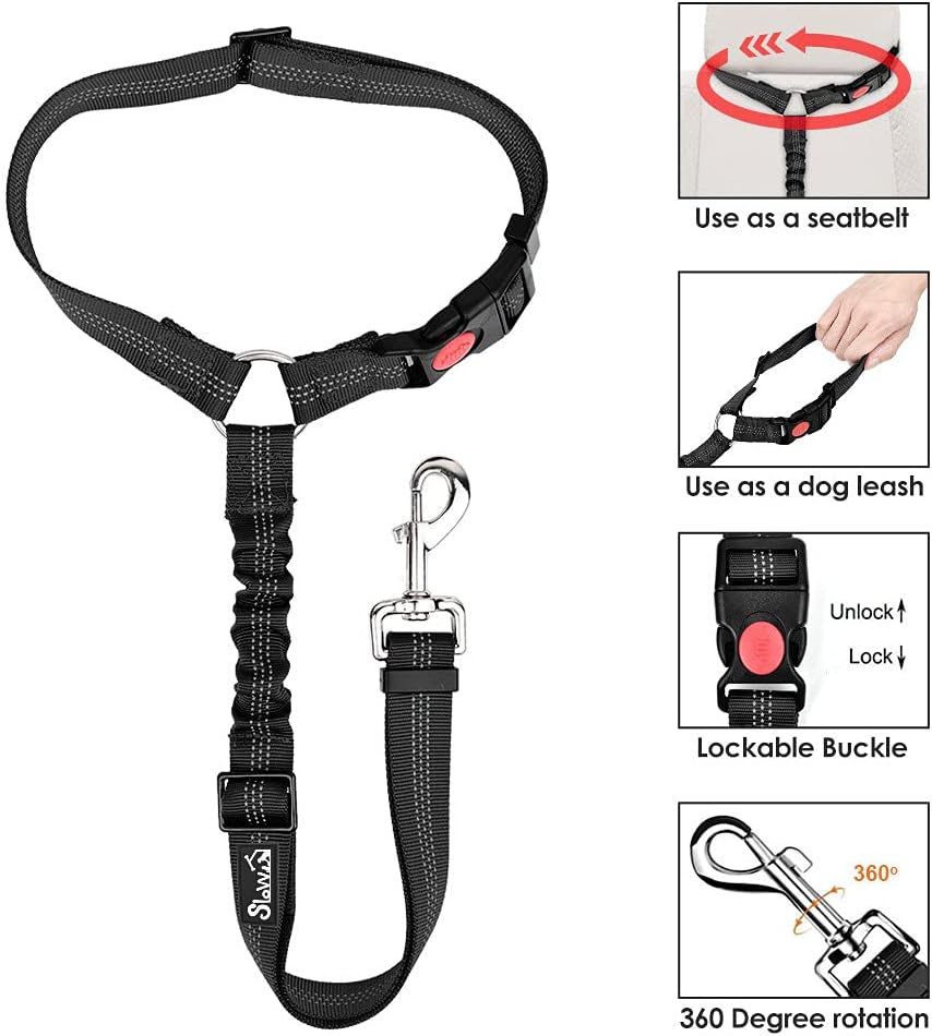 - 【Keeping Safe and Comfortable】- The dog accessory helps to ensure the safety of your pet and prevent you from distracting when driving. It allows your dog to sit, stand, lie down comfortably or reach to see out the window but keep the dogs from jumping around in the car. Easily to fasten it onto the dog harness via the 360 degree rotation metal buckle.