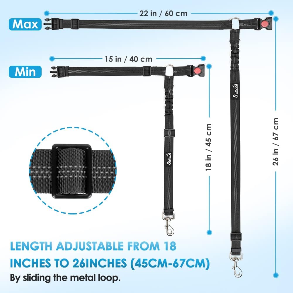 - 【Adjustable Length】- With buckle on the straps and the elastic bungee inside, this seat belt can be adjusted from 20 inches to 27 inches and can be stretched to 32 inches for the maximum length. The circle can be adjusted from 16 inches to 24 inches. Good adjustable length so the dogs can get themselves comfy without restricting themselves.