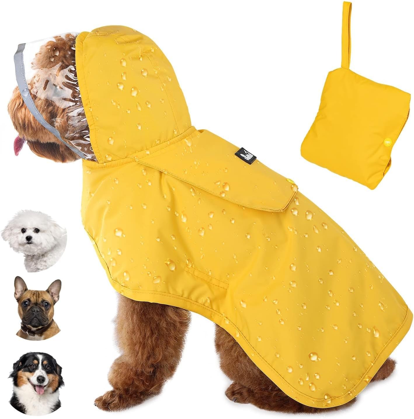 - 【Clear Hooded & Reflective Brim for Safety】 --- Newly designed with a transparent EVA hood, this dog raincoat can help shield the rain, wind and snow without blocking the sight of your pets. Extra safety is ensured by the reflective brim for high visibility at night or on dreary rainy days.