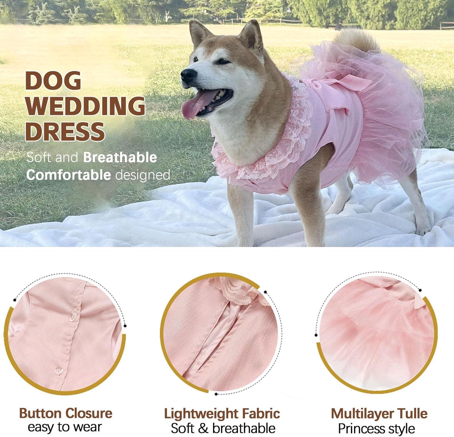 Easy to wear: This dog wedding outfit is designed for dogs to wear easily. Easy to put on and take off, let your dog princess dress freely show elegance and charm at the wedding. Wedding style dresses transform your pet into a beautiful bride
