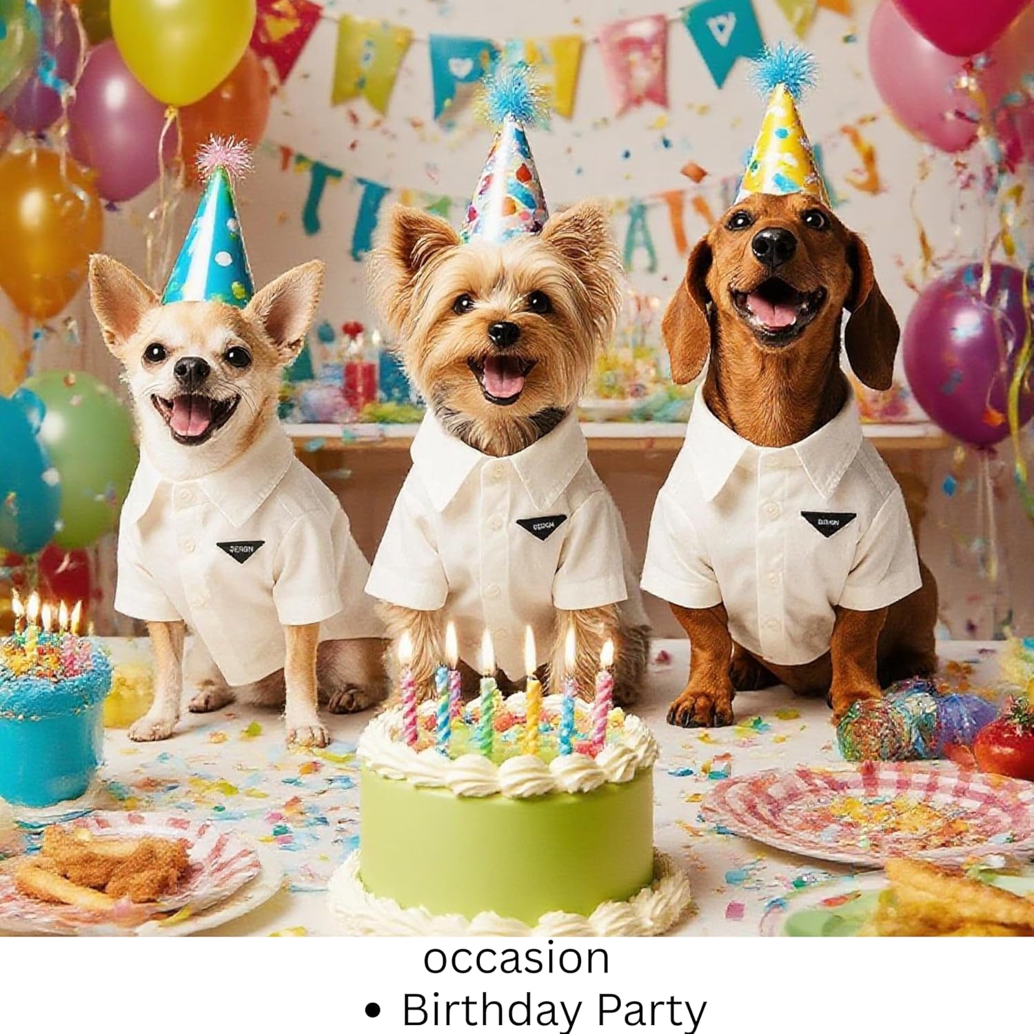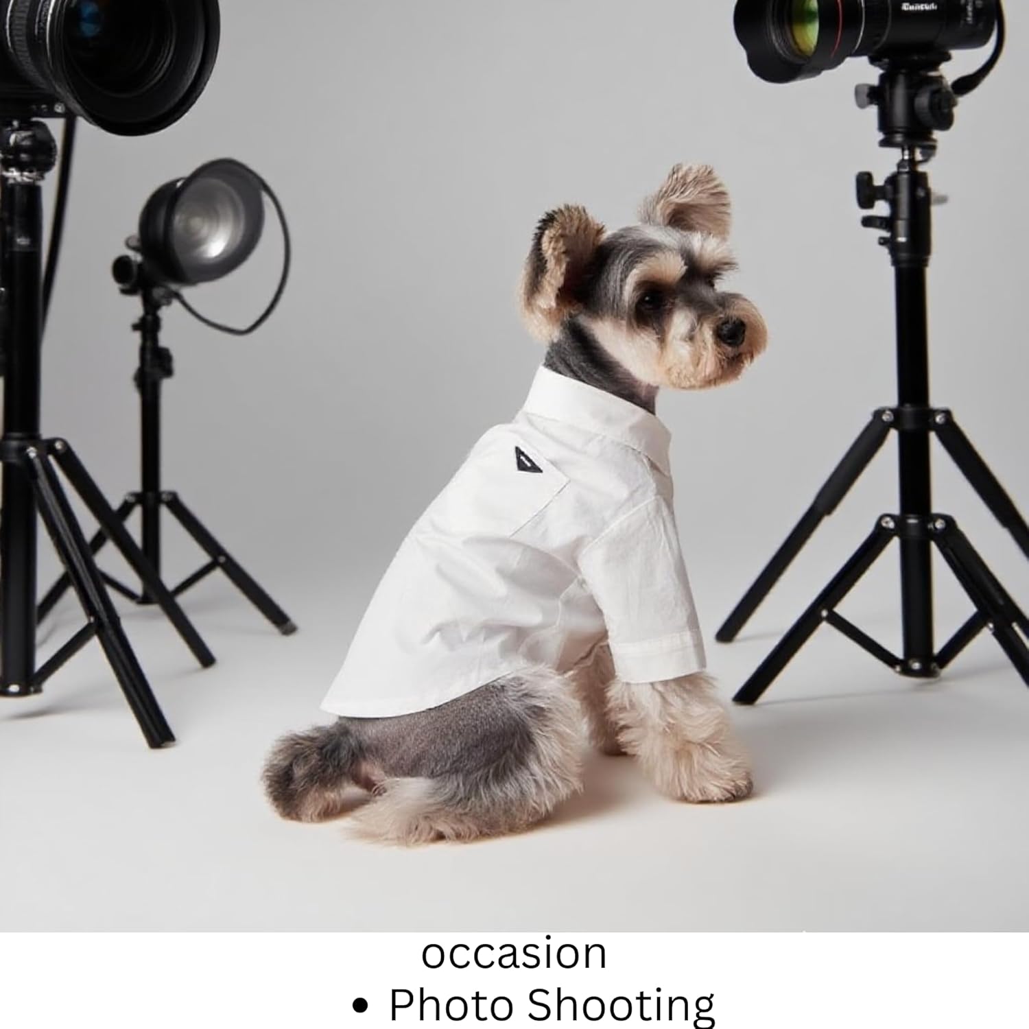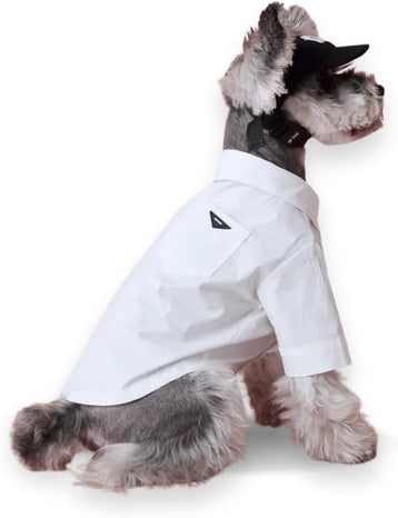 - Luxury Formal Look – Perfect Dog Outfit. This white button-up dog shirt brings a premium, designer-inspired feel with a front pocket and elegant collar. Whether it's for a wedding, photoshoot, or birthday party, this is the go-to dog outfit for dogs with taste.