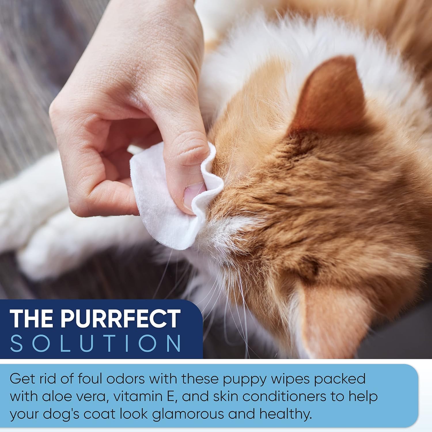 - Vet and Groomer Recommended: This 400-piece pack of thick dog wipes is safe to use on your puppy’s coat, ears, face, paws, and skin. These wipes for pets also work great with cats!