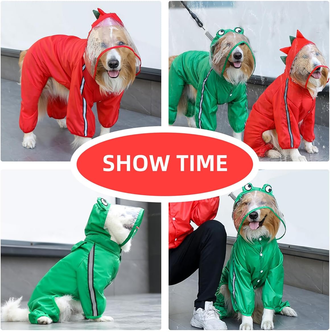 MANON ROSA Dog Raincoat Waterproof & Quick-Drying Puppy Rain Coat with Hood and Leash Hole Cute Hooded Rain Poncho Gear Clothes for Small Medium Large Dogs (Frog,Large)
