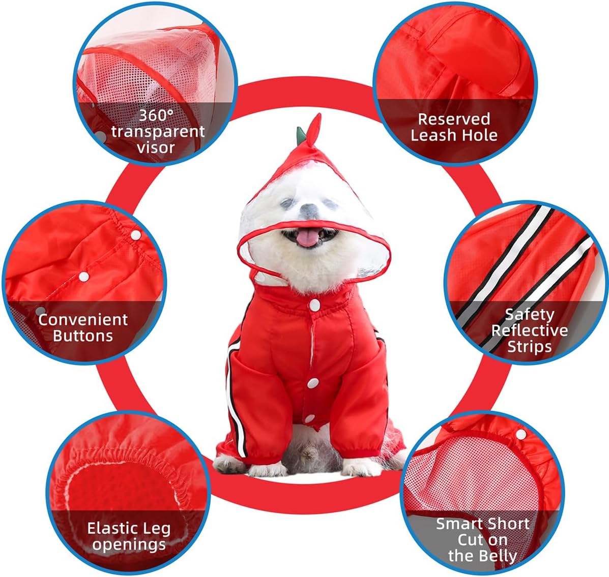 Breathable and Comfortable: Our rainwear features a breathable mesh lining that prevents stuffiness and discomfort, allowing your pet to stay cool even in humid weather. The transparent clear hoodie design ensures their vision remains unobscured.
