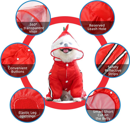 Waterproof and Quick-Drying: Made from high-quality polyester fabric with advanced waterproof technology, this rain poncho keeps your pet dry even during heavy downpours. It dries quickly for hassle-free cleanup.