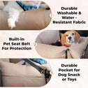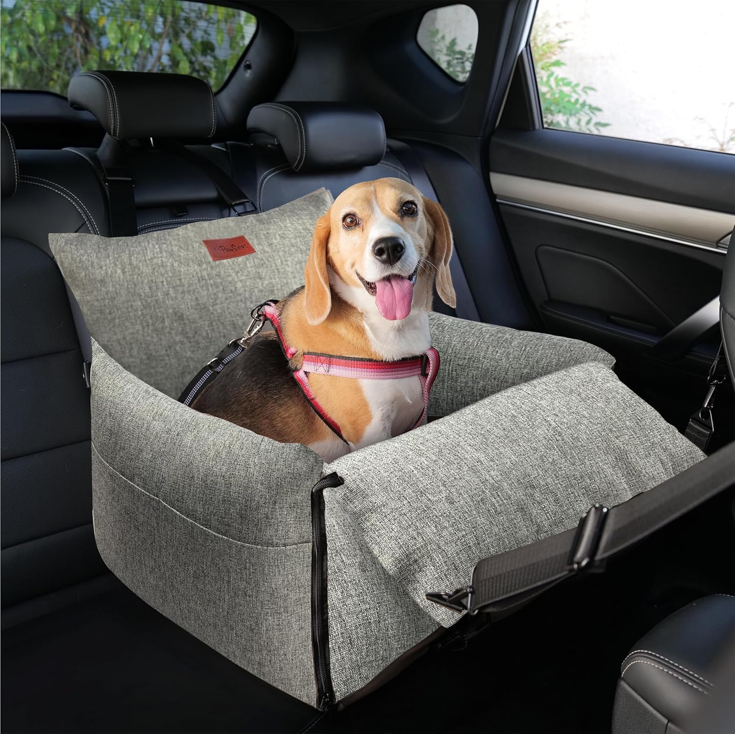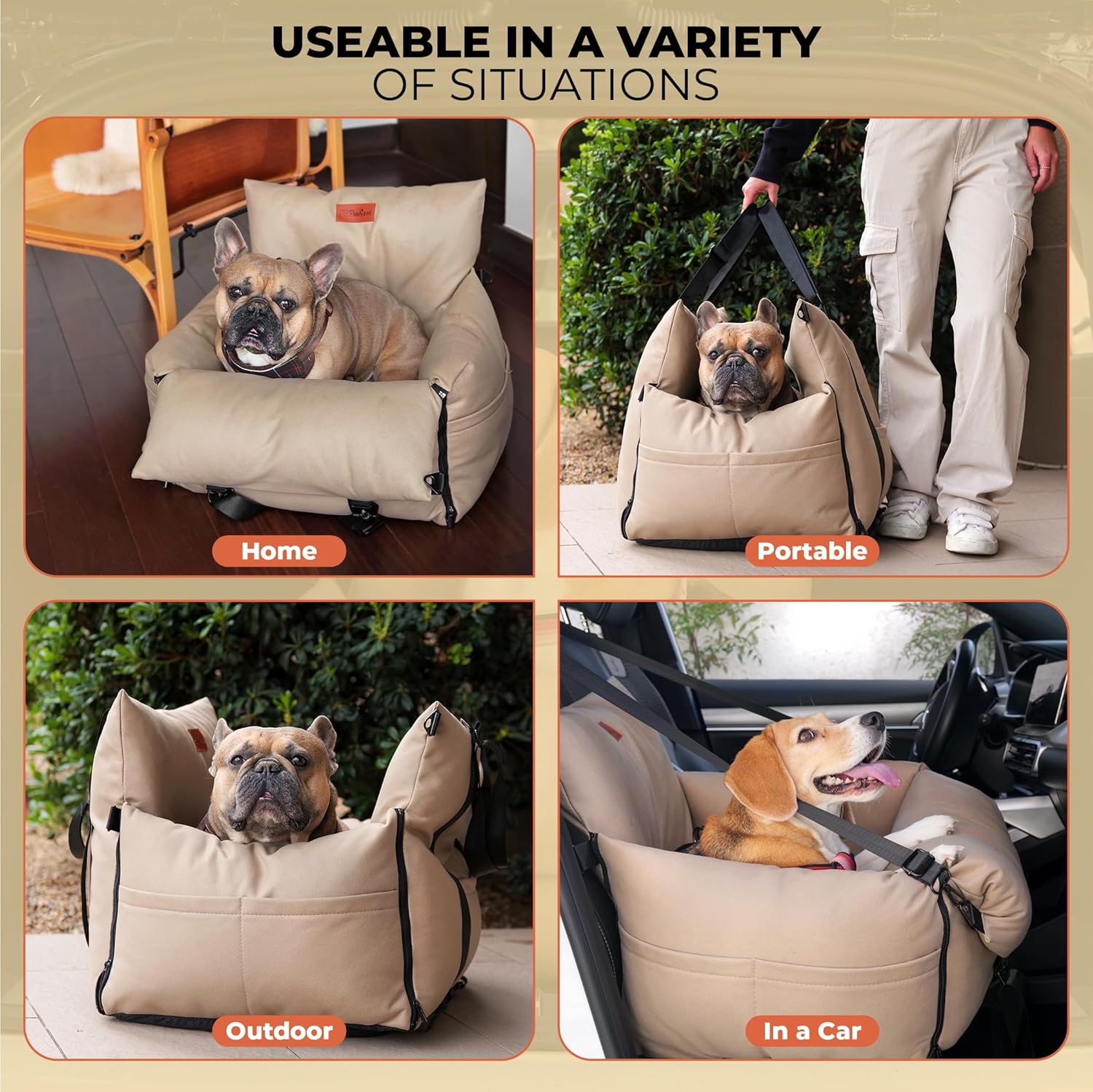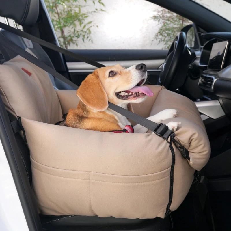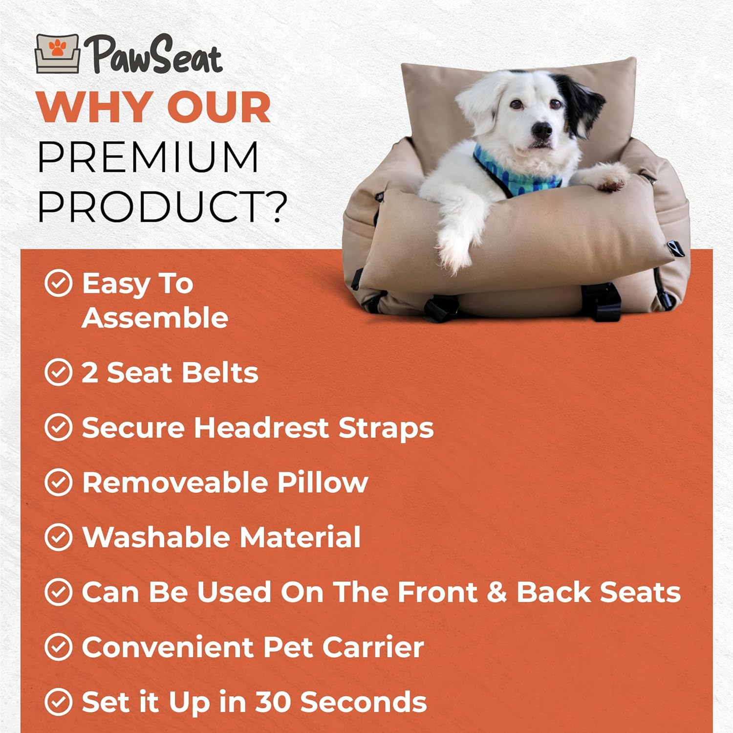 Introducing the PawSeat Premium Dog Car Seat, the ultimate travel companion for your small to medium-sized furry friend. Designed with their comfort and safety in mind, this portable dog booster seat provides a secure and cozy space for them during car rides. Our dog car seat features adjustable straps, ensuring a perfect fit in any vehicle. With its clip-on leash, you can have peace of mind knowing that your dog will stay safely in place throughout the journey. The seat is suitable for dogs weighing up to 35 lbs, making it perfect for a wide range of breeds. Not only does the PawSeat keep your dog secure, but it also offers convenience with its storage pockets. You can easily store toys, treats, and other pet essentials within reach, keeping both you and your dog organized on the road. Safety is our priority, which is why this car seat also comes with a built-in safety leash. This provides an extra layer of protection, preventing your pup from wandering or jumping out of the car seat while you focus on driving. We understand that comfort is essential, especially during long drives. That's why our PawSeat is equipped with a memory foam filling. Your dog will experience ultimate relaxation and support, ensuring they enjoy their travel experience as much as you do.