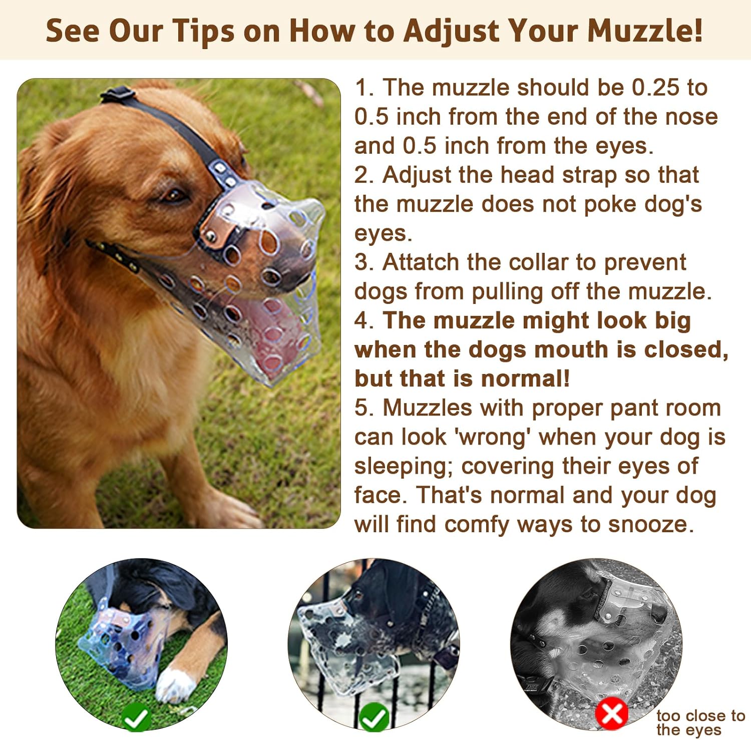 - See Through Dog Muzzle: With a clear PVC design, the muzzle for large sized dog offers an unobstructed view of your dog's expressions, letting you stay aware of their current state.