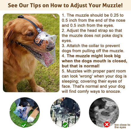 - 60 Days Hassle-available Service: Don't hesitate to reach out if you have any concerns about our product. We're eager to answer your queries. We offer a 60-day support period and an anytime replacement for your peace of mind. Every package includes detailed instructions of the muzzle. Please ensure you read them thoroughly before using, as not doing so could reduce the product's usability.