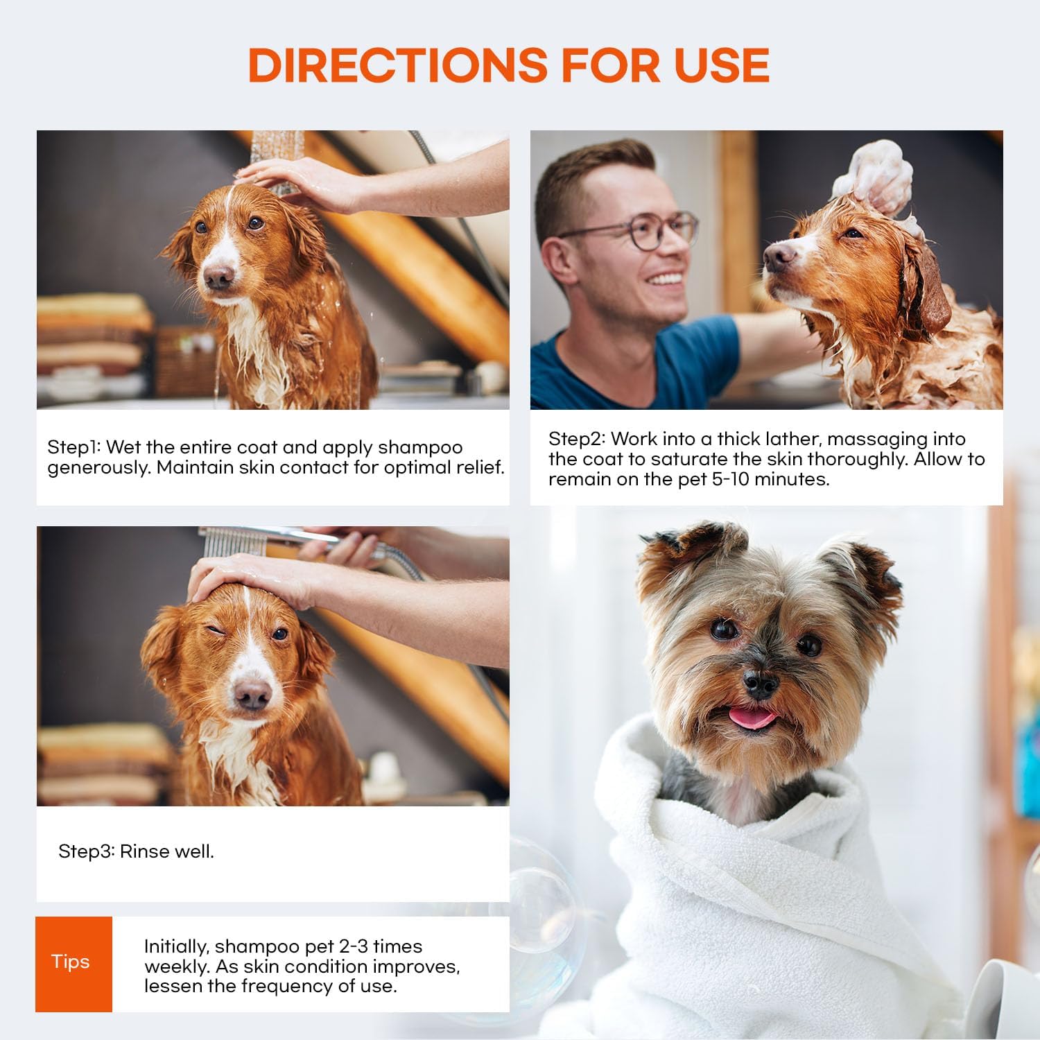 - GENTLE, SAFE & EFFECTIVE CLEAN This dog anti-itch shampoo is free from harsh chemicals, sulfates, parabens, and artificial dyes. Safe for regular use, it delivers allergy relief for dogs while supporting long-term skin health and comfort. Suitable for all breeds and coat types.